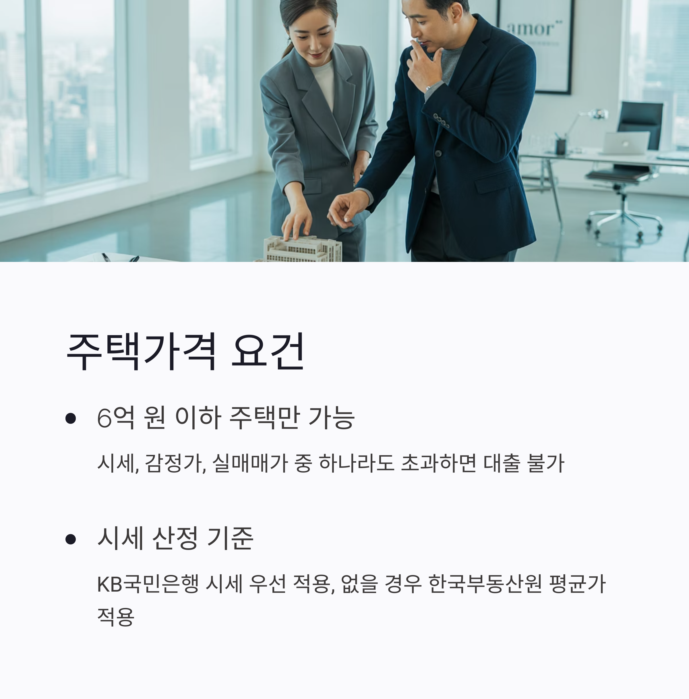 ✔ 주택가격 한도: 9억 원 → 6억 원