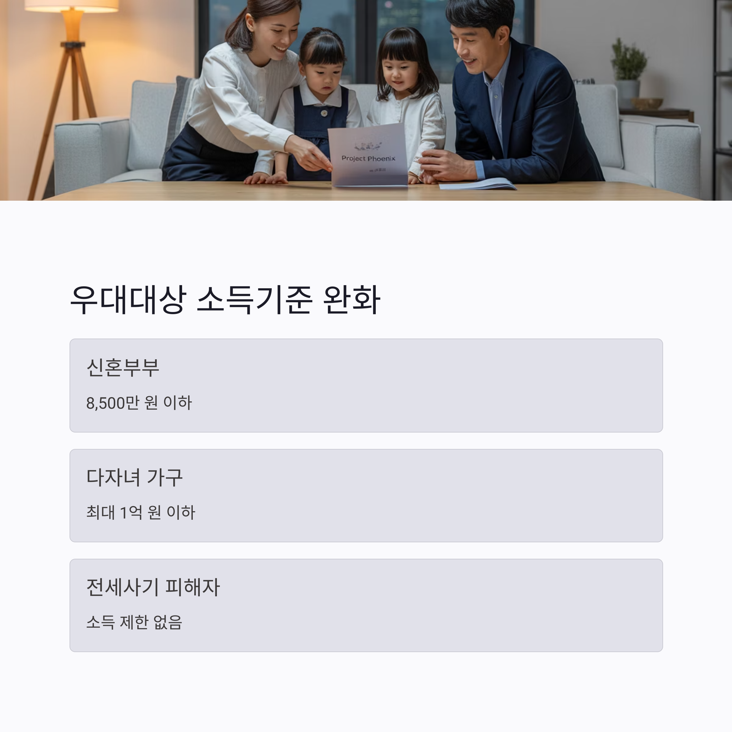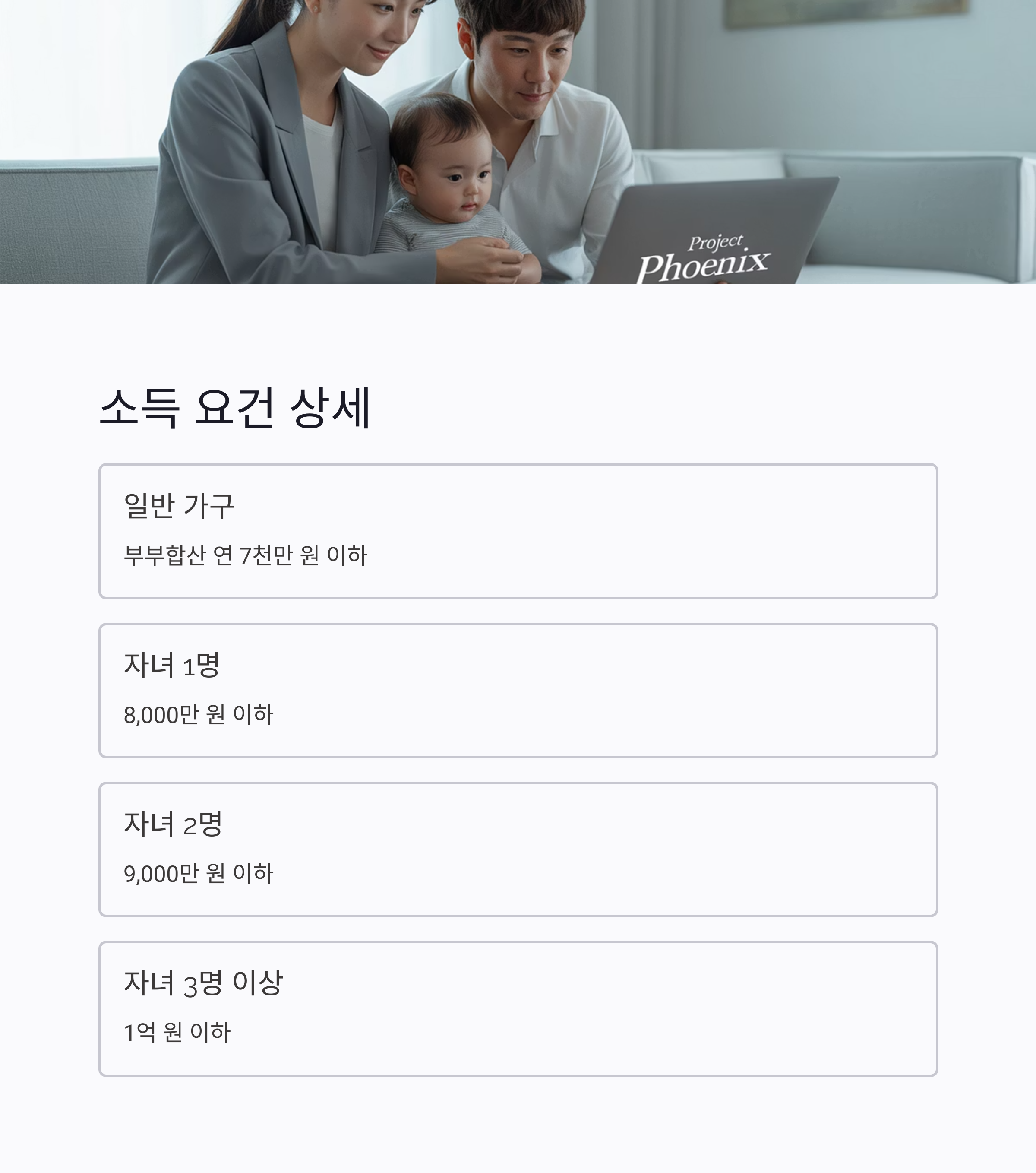 ✔ 소득조건: 무제한 → 부부합산 연 7천만 원 이하