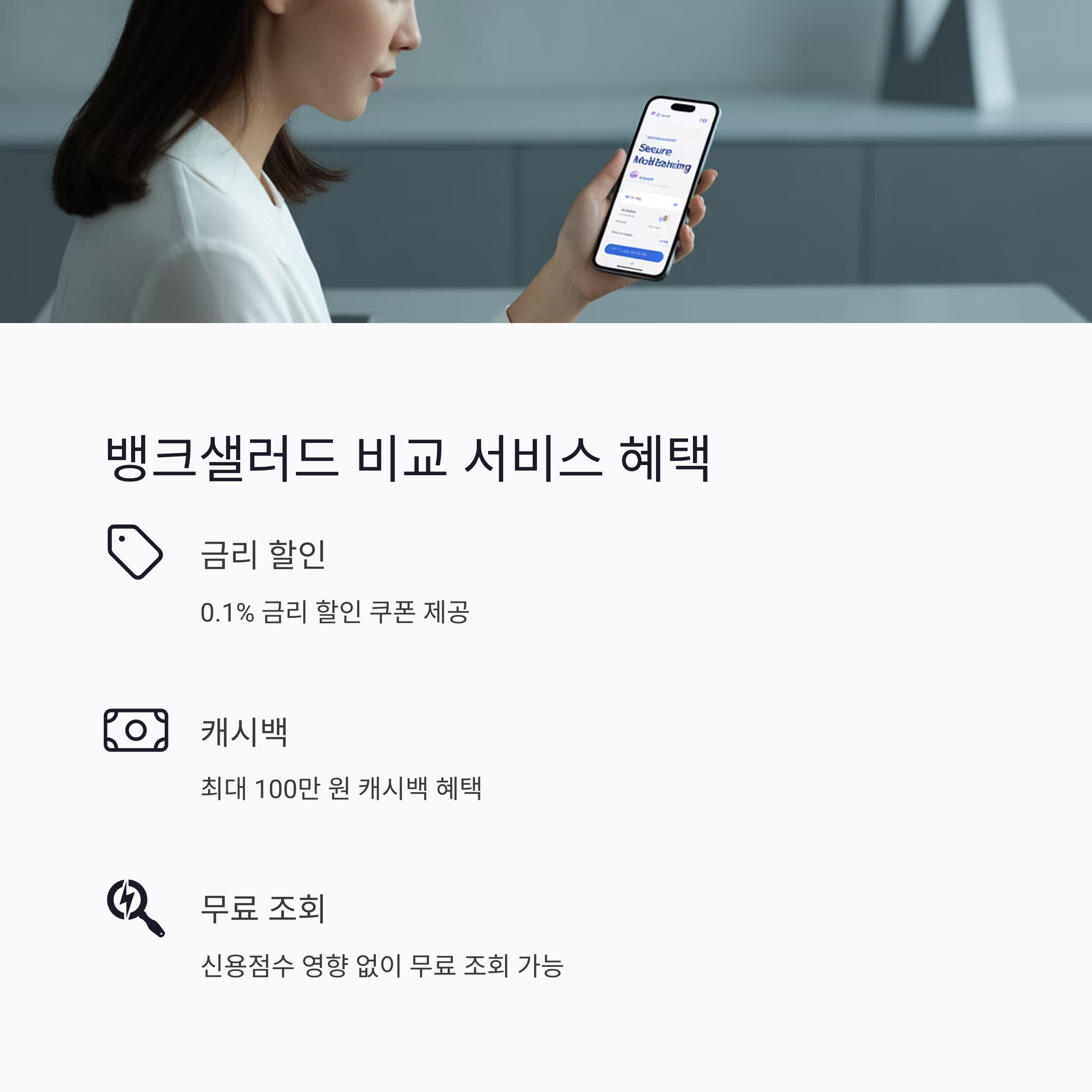 뱅크샐러드를 활용해 스마트하게 대출상품을 비교하고, 금리 할인 + 캐시백 혜택까지 챙기세요!