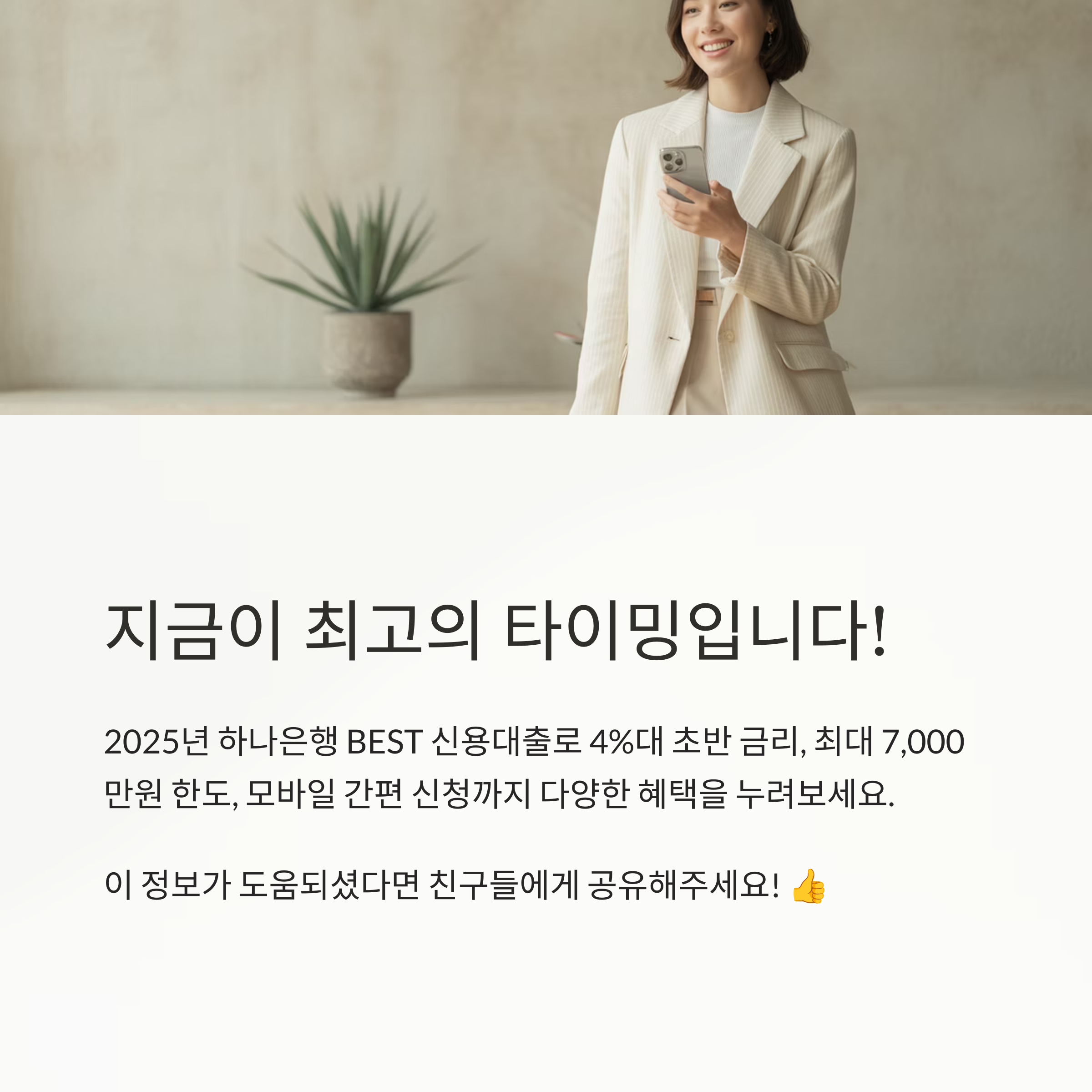 2025년 하나은행 BEST 신용대출은 우량 신용자에게 매우 유리한 조건의 대출 상품입니다.