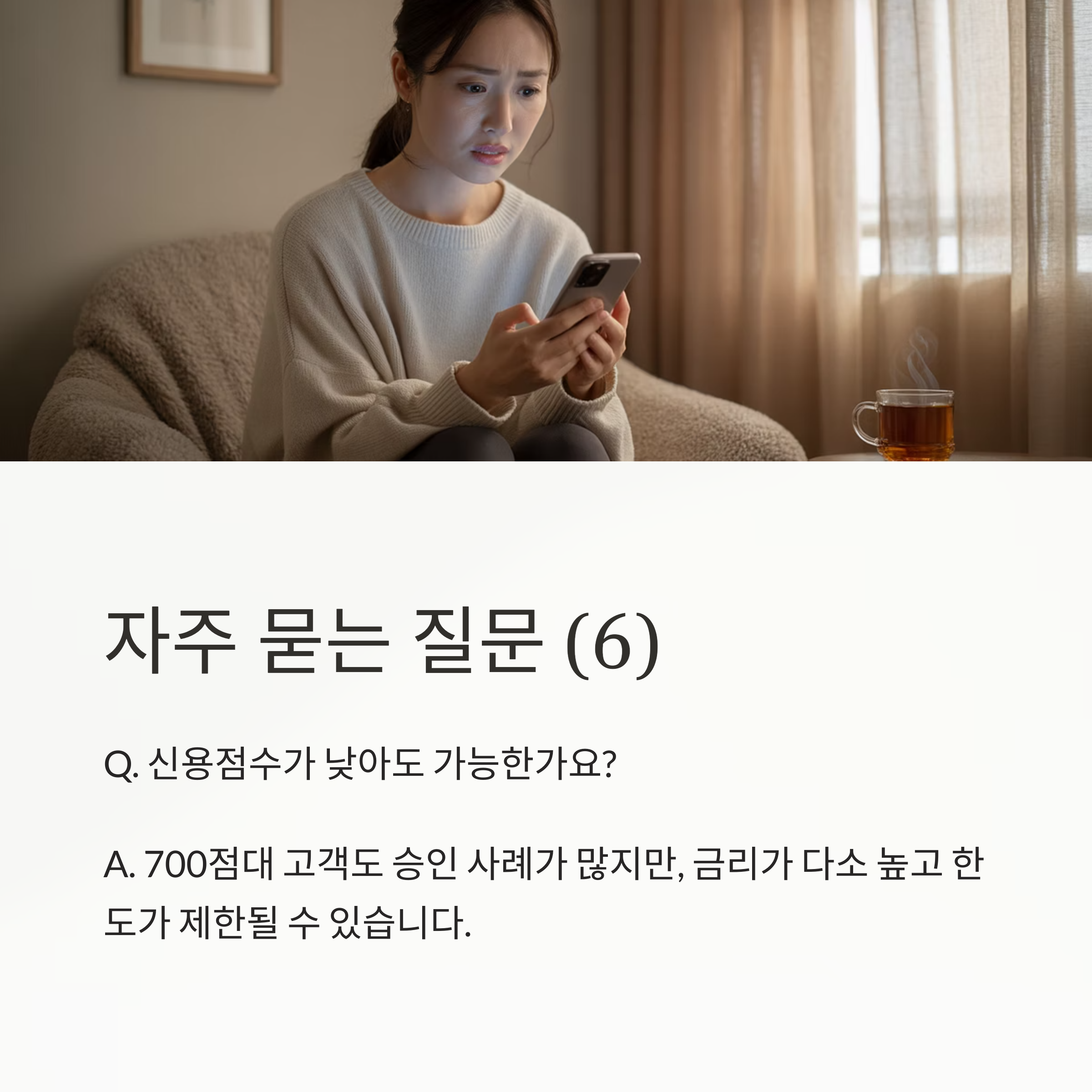 A6. 700점대 고객도 승인 사례가 많지만, 금리가 다소 높고 한도가 제한될 수 있습니다.