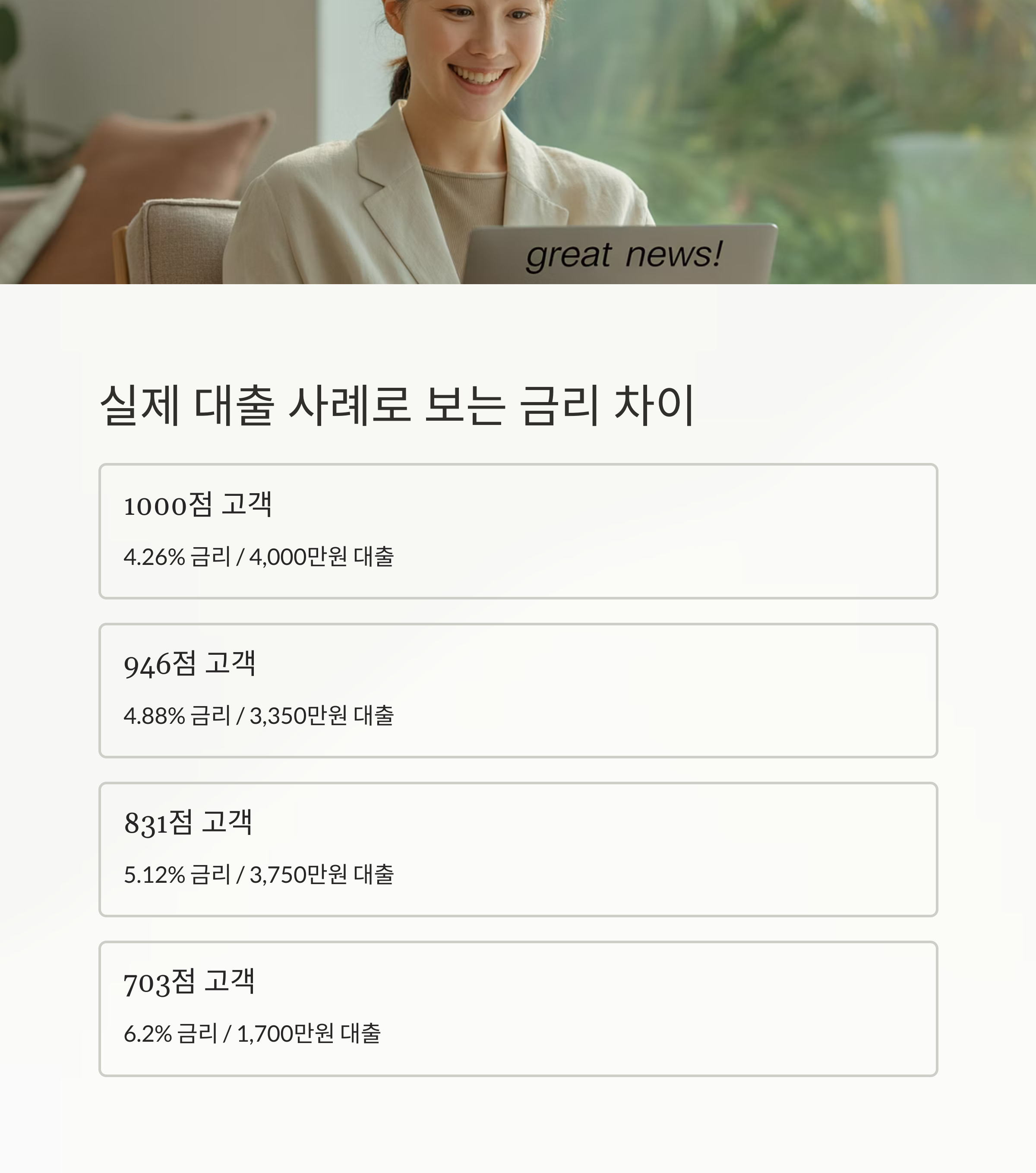 ✅ 신용점수가 높을수록 더 낮은 금리와 높은 한도 혜택을 받게 됩니다.