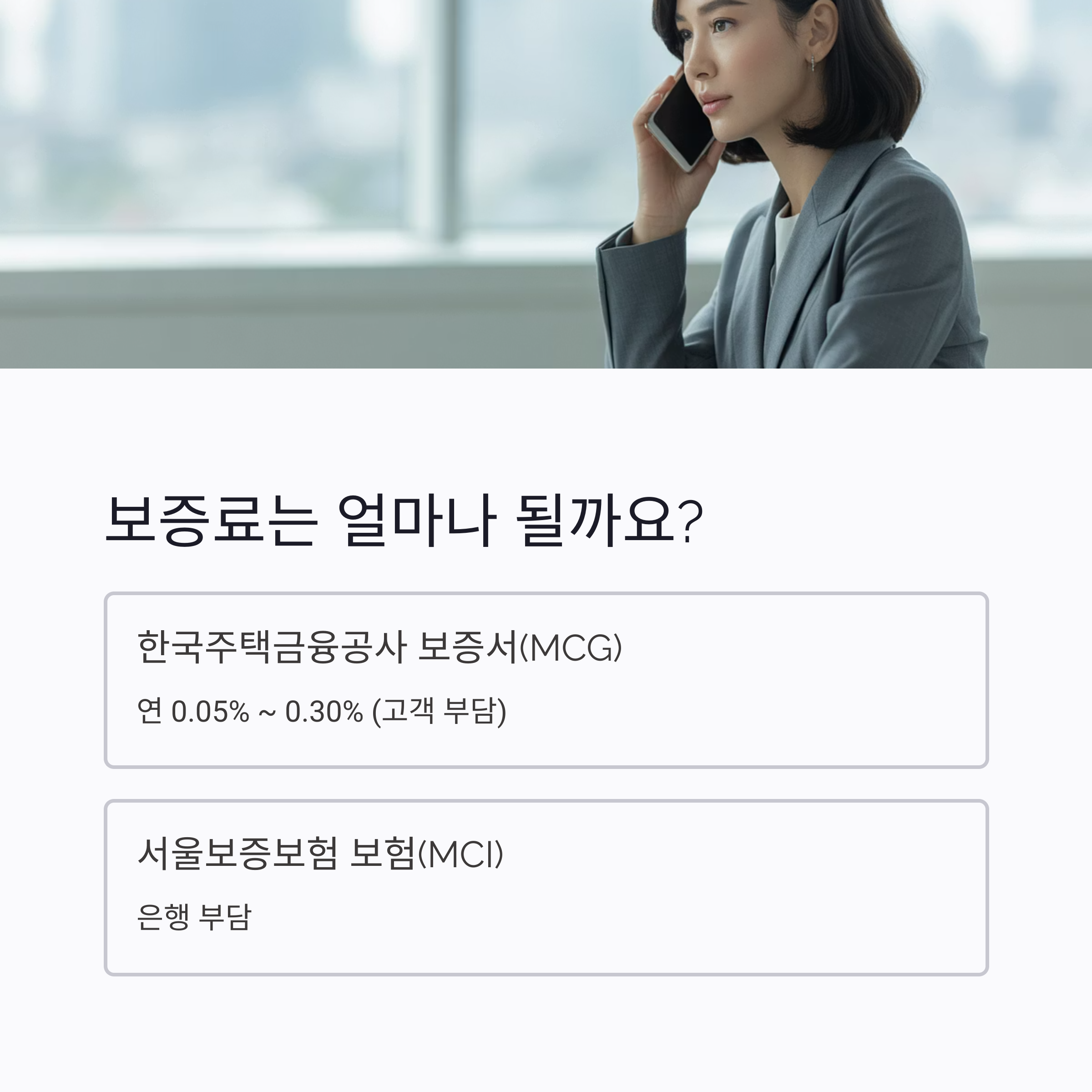 ✔ 보증료: - 한국주택금융공사 보증서(MCG): 연 0.05% ~ 0.30% (고객 부담)