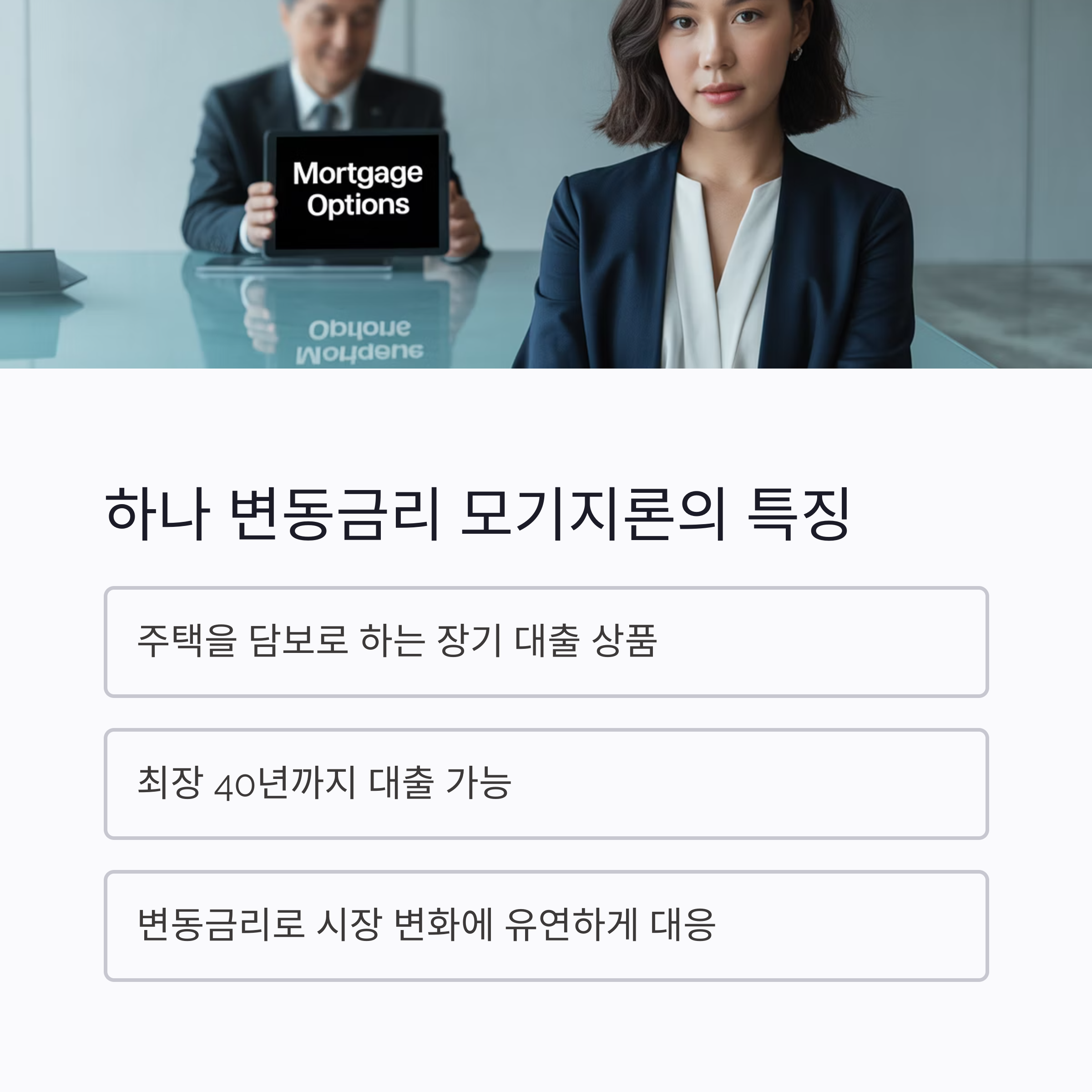 하나은행의 변동금리 모기지론은 조건, 유연성, 수수료 측면에서 강력한 경쟁력을 갖춘 상품입니다.