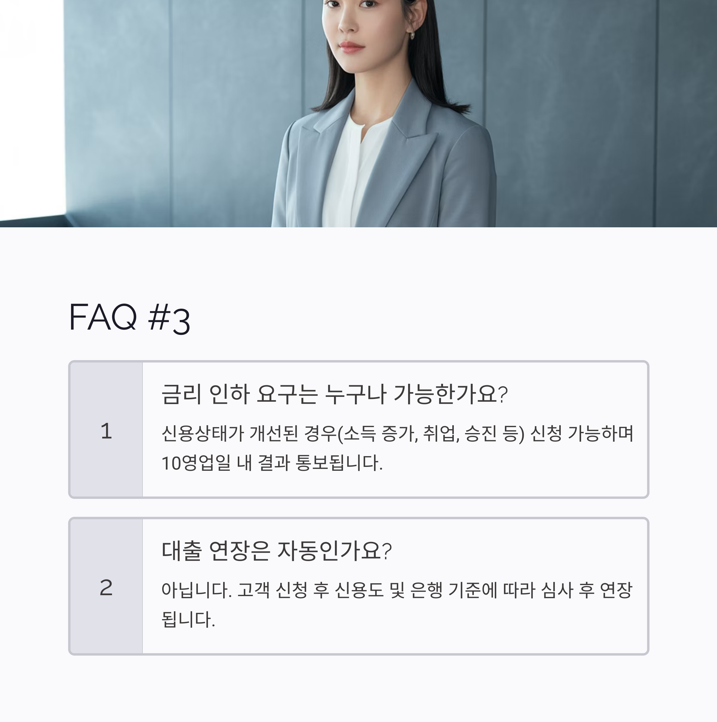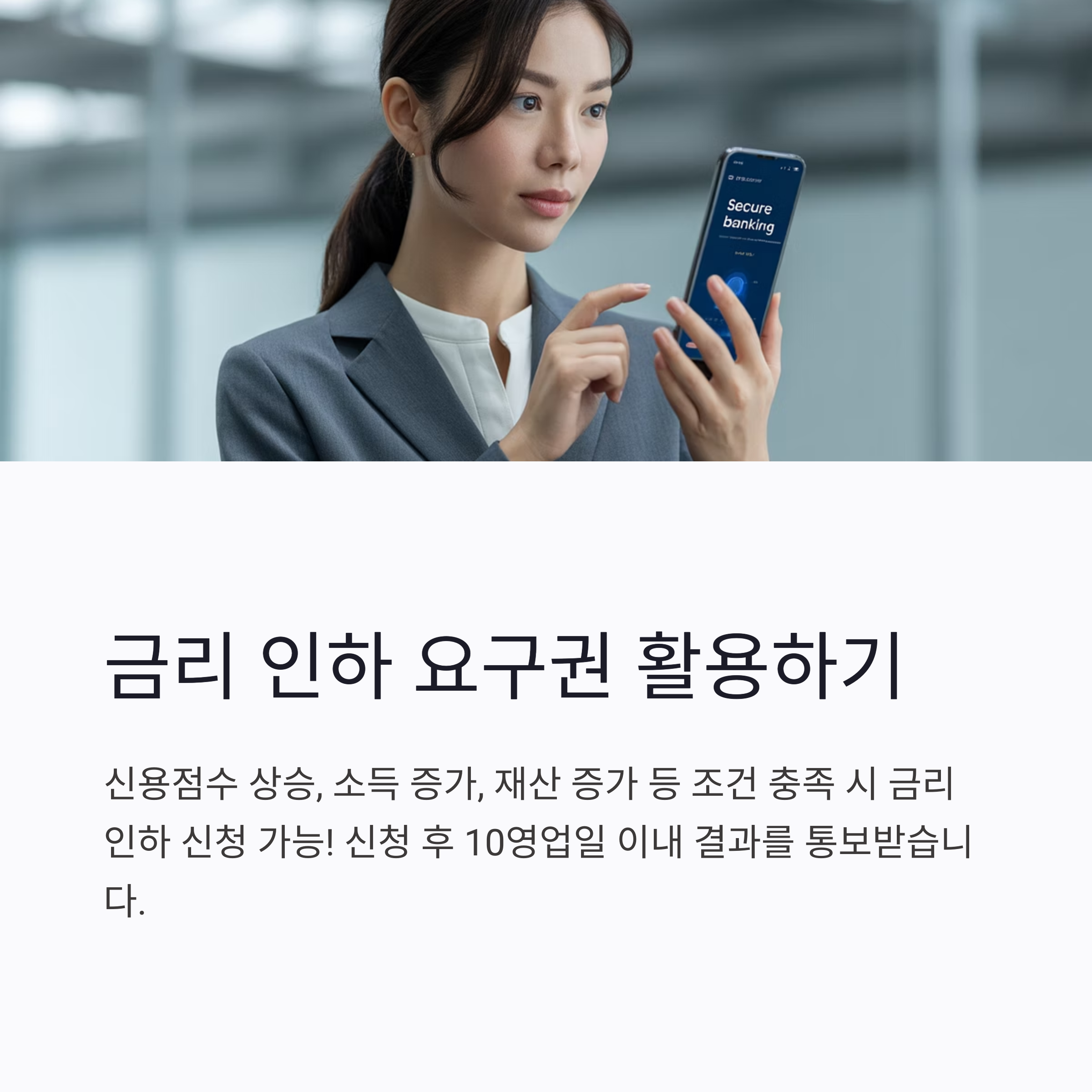 신용점수 상승, 소득 증가, 재산 증가 등 조건 충족 시 금리 인하 신청 가능!