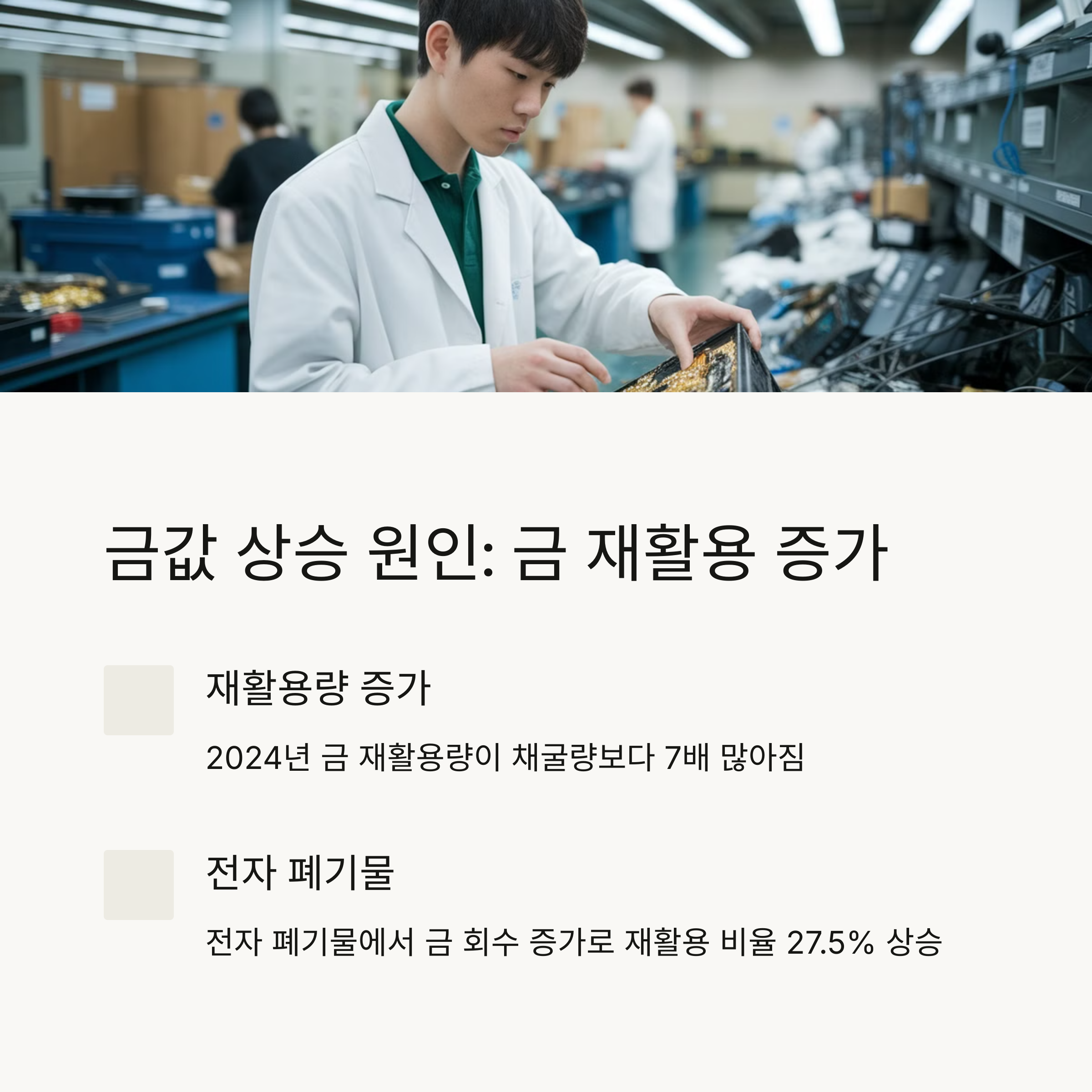 ▶ 전자 폐기물에서 금 회수 증가로 인해 재활용 비율 27.5% 상승