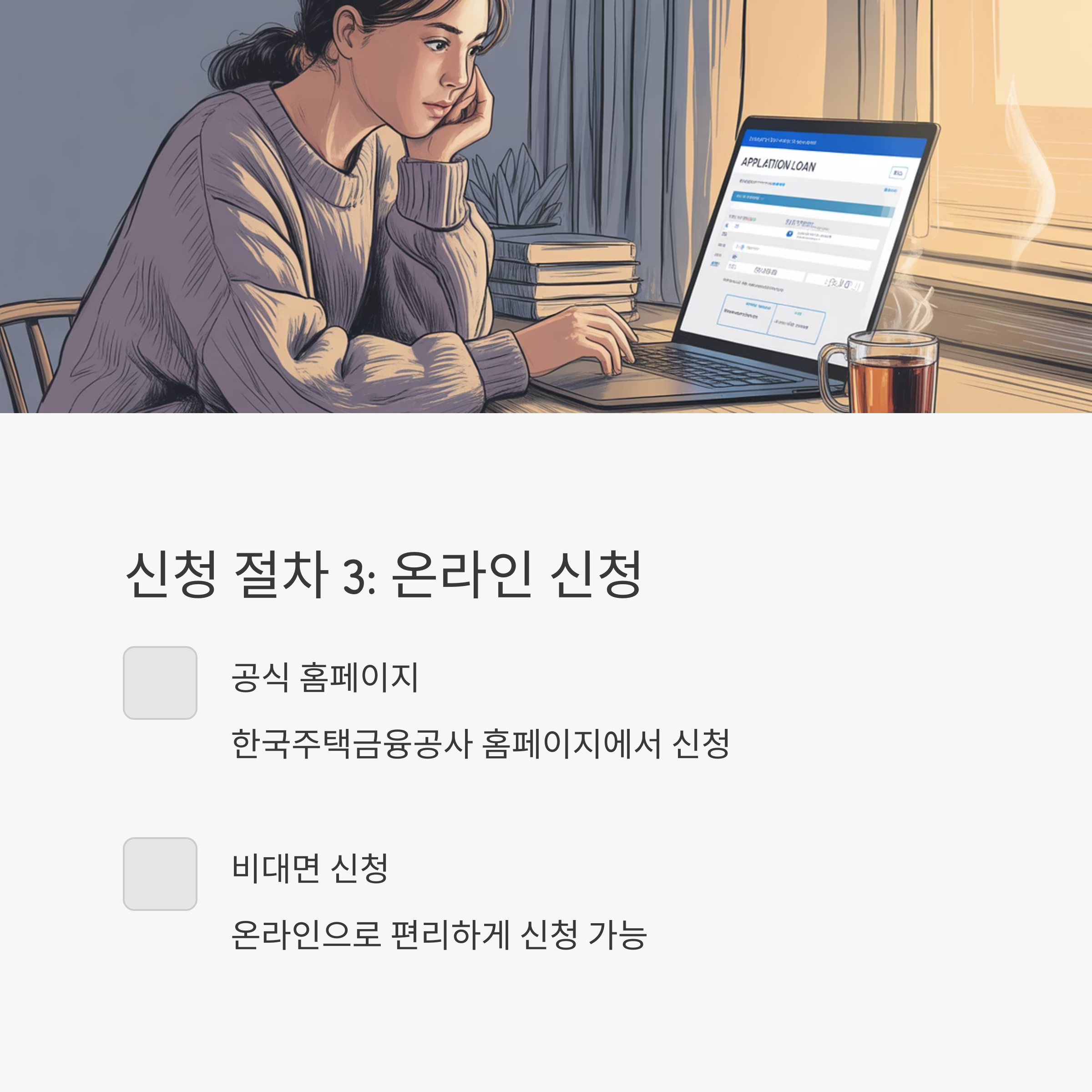 보금자리론 신청은 총 4단계 절차로 이뤄집니다.