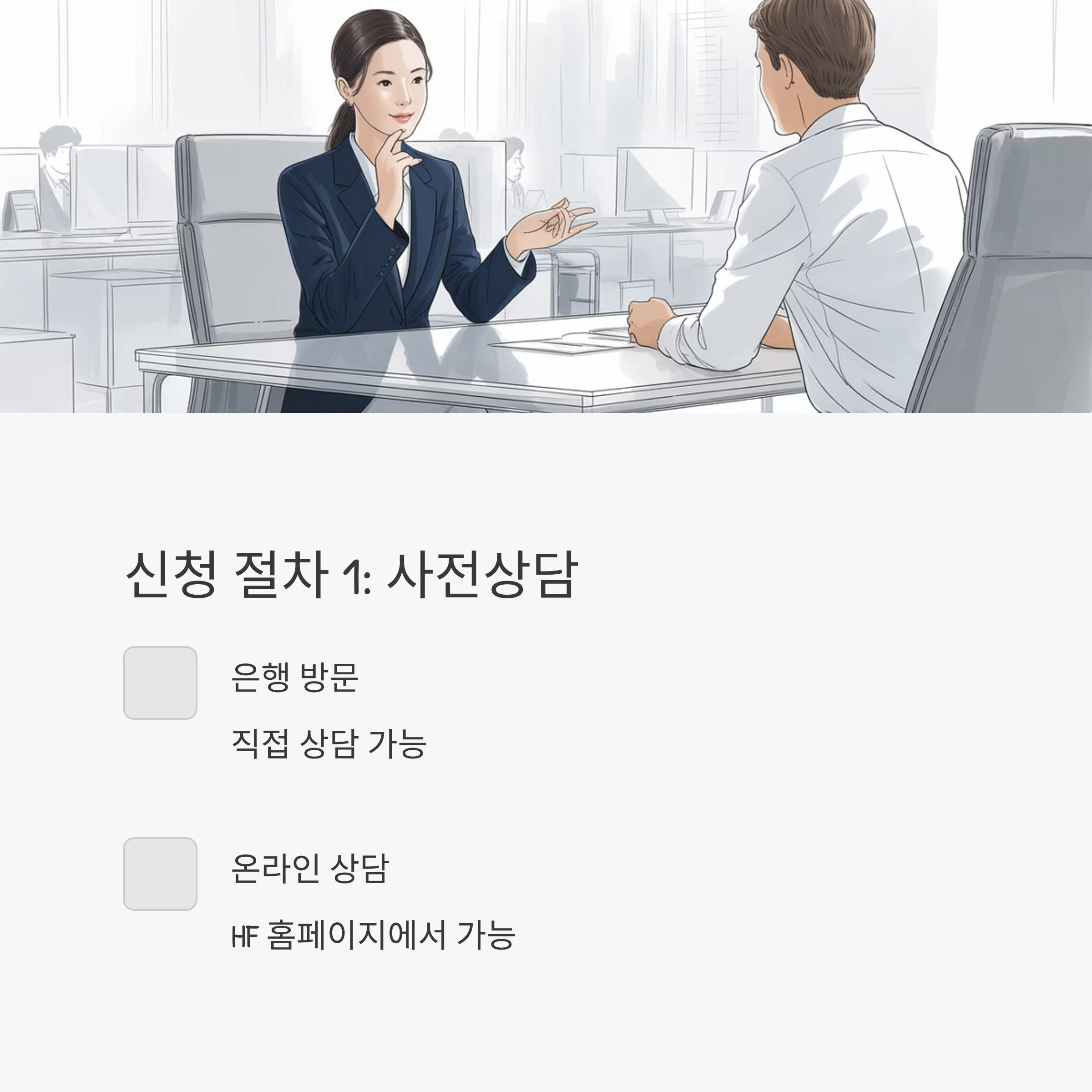 - 은행 방문 또는 HF 홈페이지에서 상담