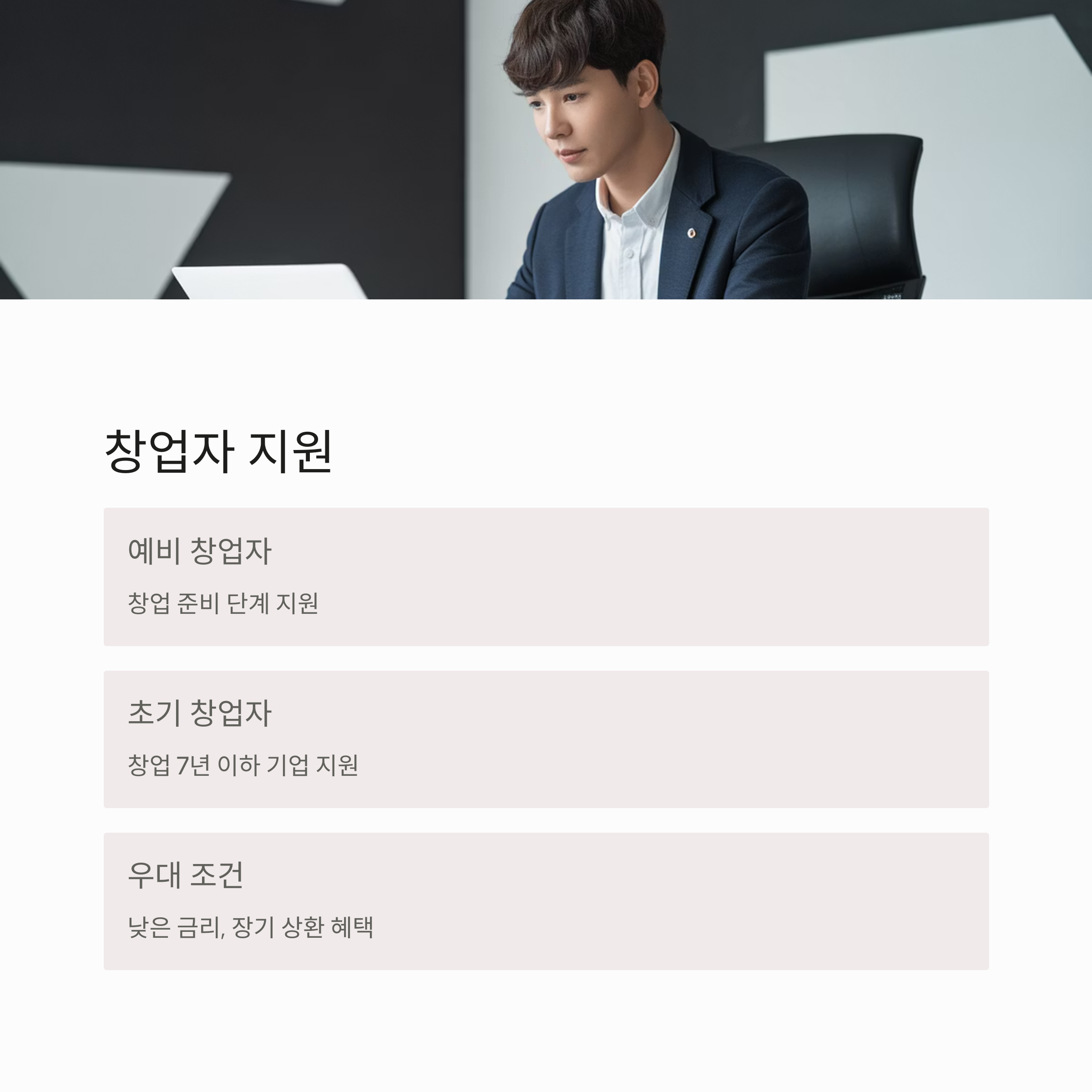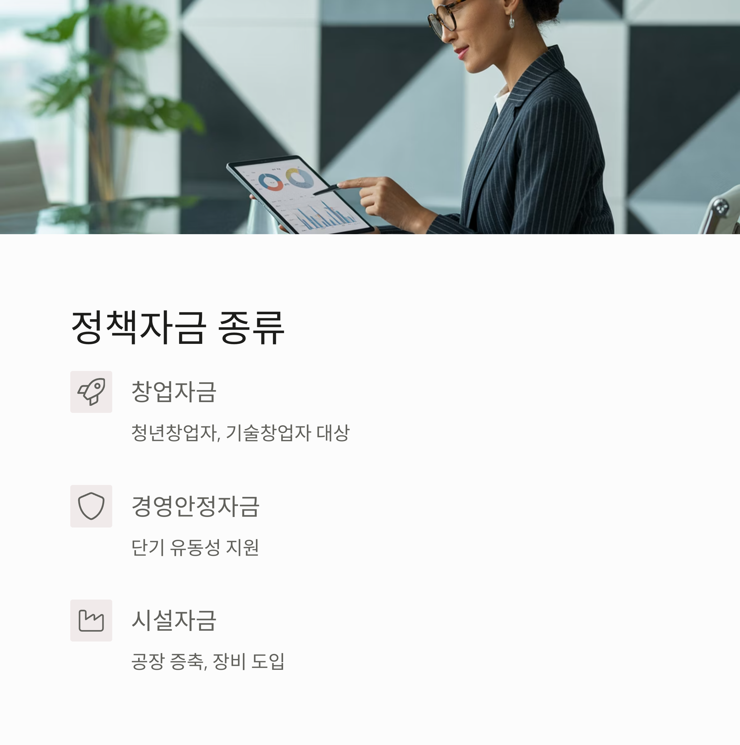 ✔ 창업자금: 청년창업자, 기술창업자 등 대상