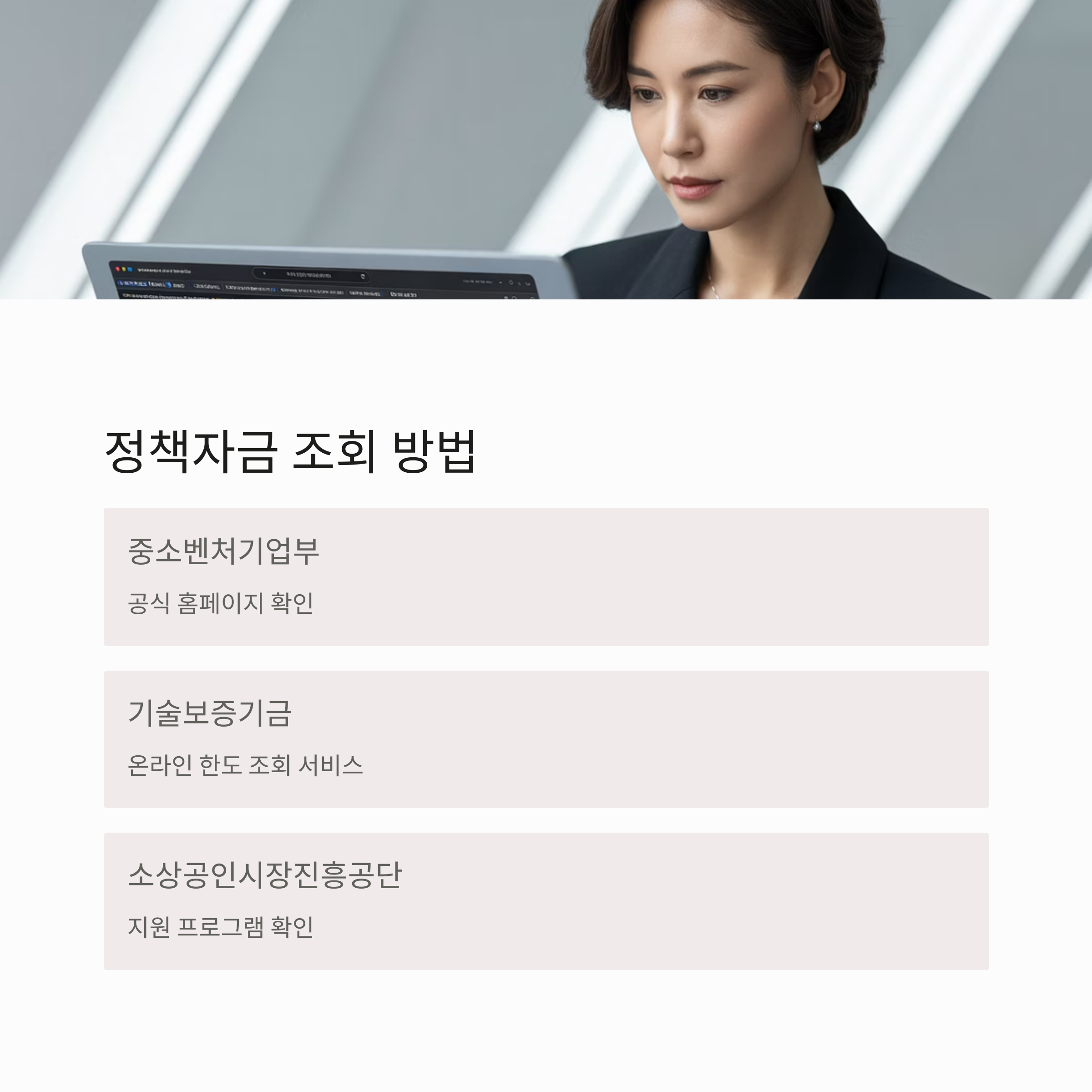 A8. 중소벤처기업부, 기술보증기금, 소상공인시장진흥공단 등의 공식 홈페이지에서 한도 및 조건을 조회할 수 있습니다.