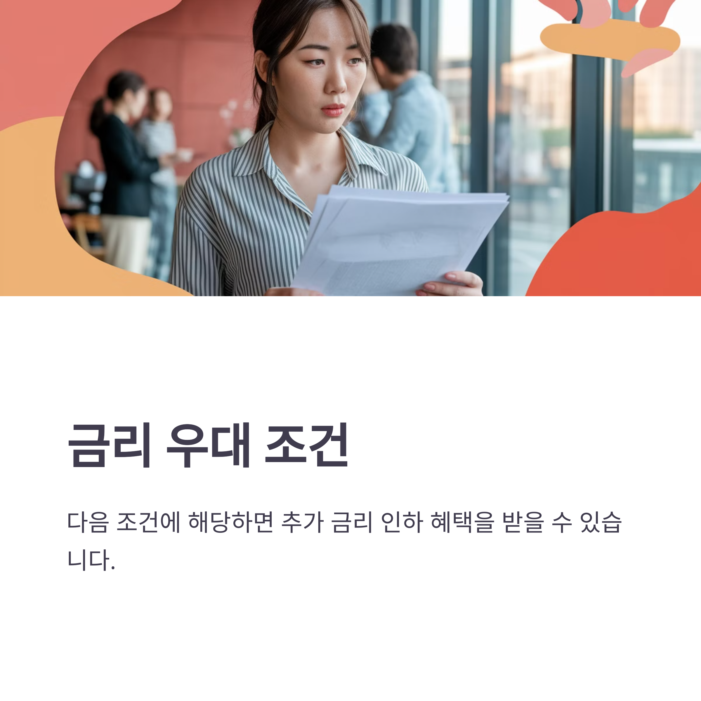 이전에는 이런 항목들을 중복 적용받아 최대 1.5%까지 혜택을 받을 수 있었지만, 이제는 총 우대금리가 최대 0.5%로 제한되면서 실질적인 혜택이 크게 줄어들었습니다.