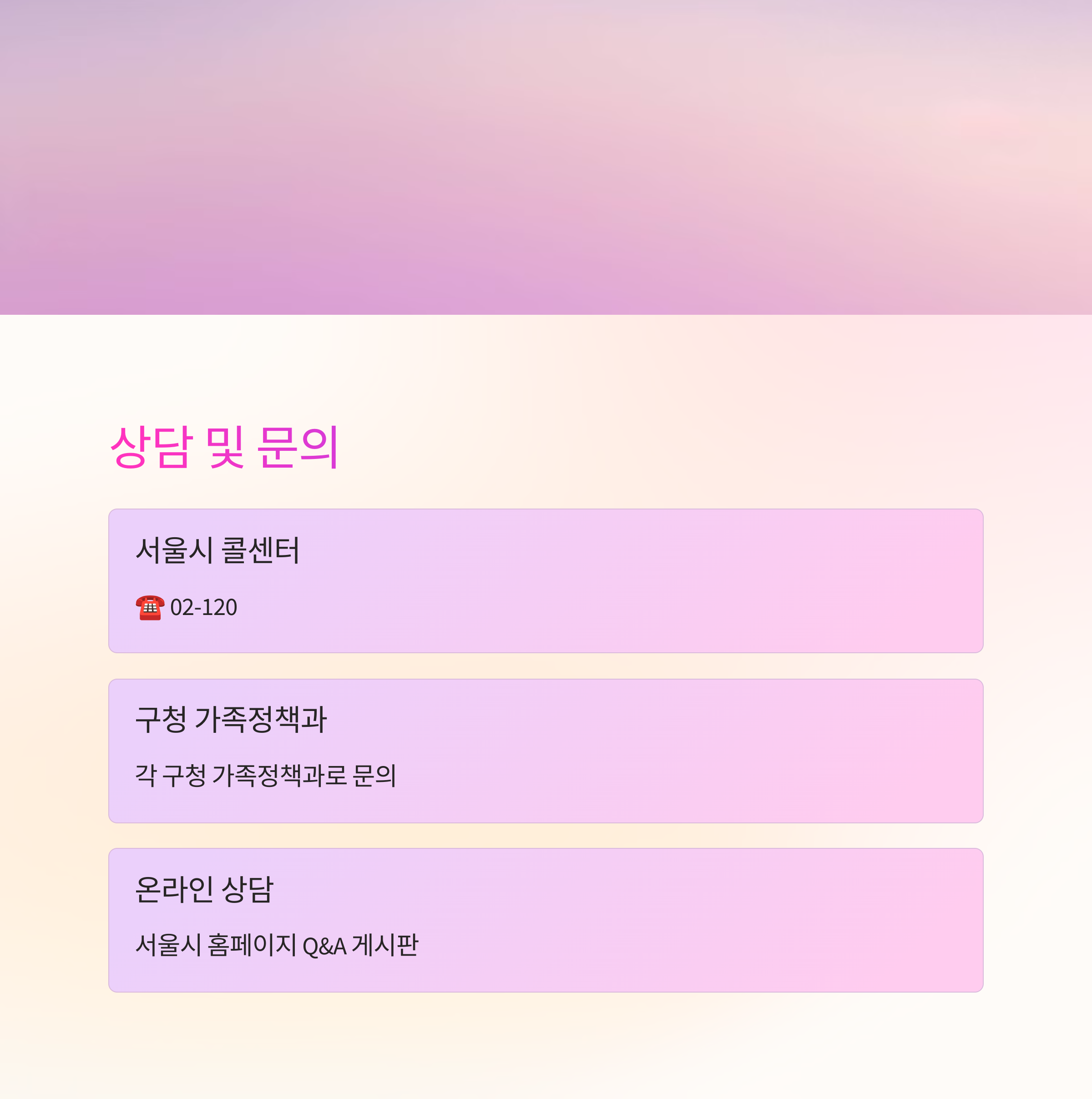서울시는 이러한 문제를 해결하고, 저출생 위기 극복과 가족 친화 도시 조성을 위해 이번 정책을 마련했습니다.