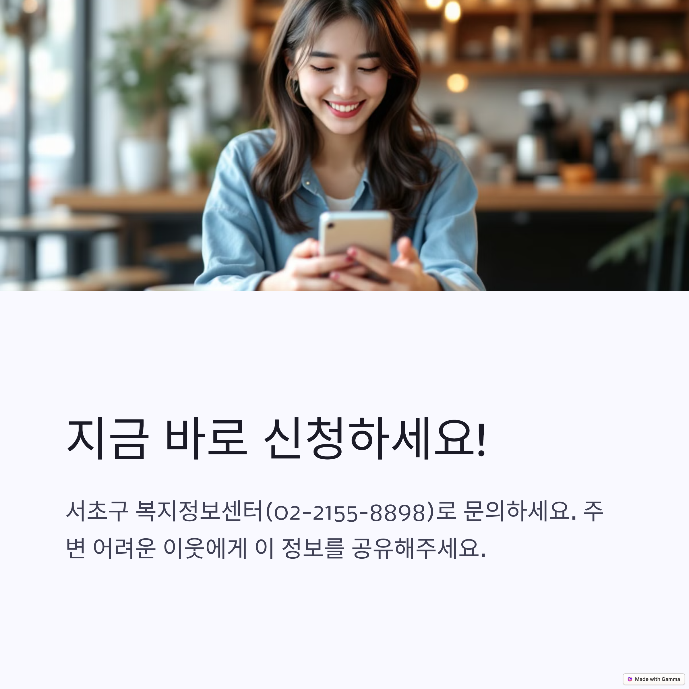 해당되는 지원제도를 놓치지 않도록 주민센터에서 확인 후 신청하시기 바랍니다.