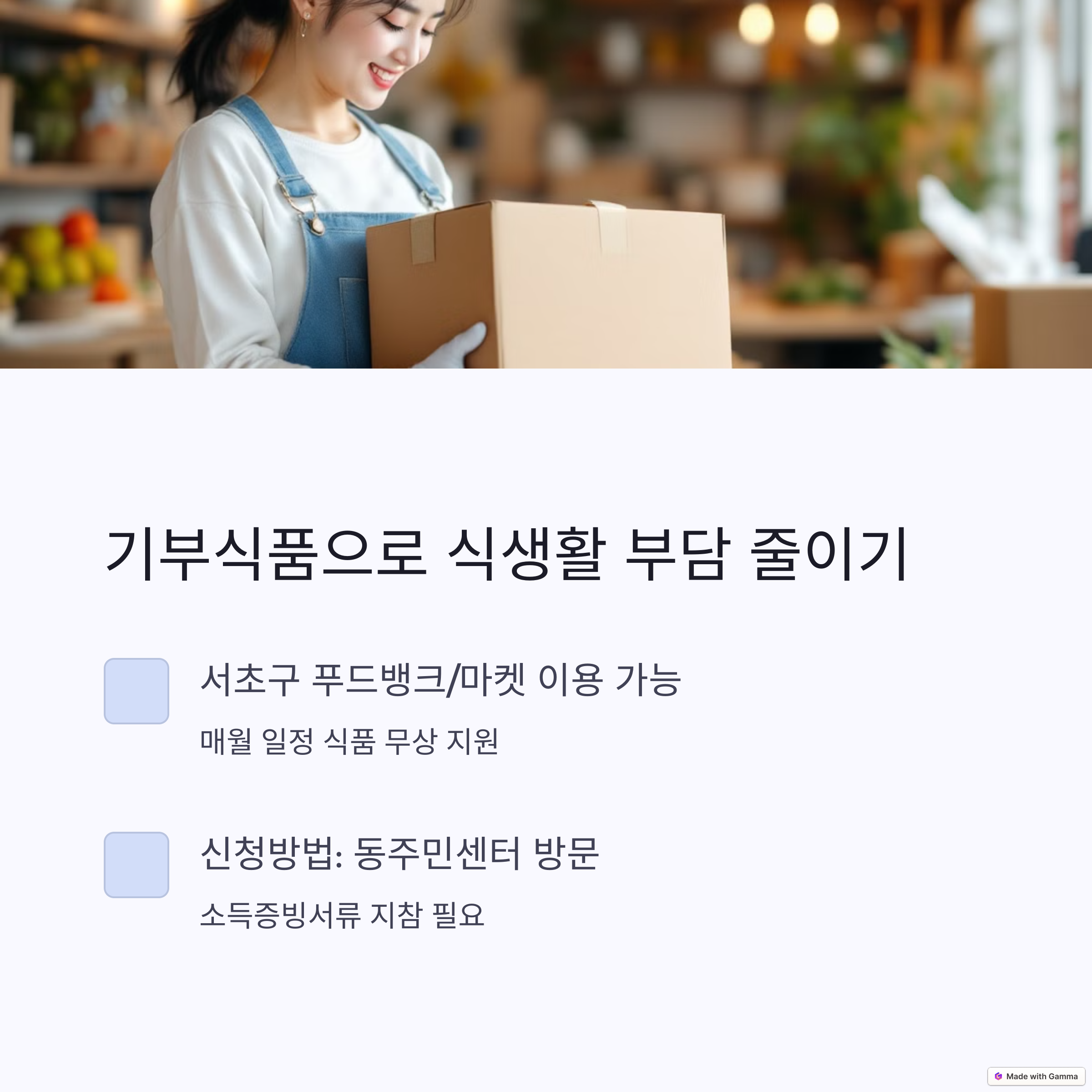✔ 지원 내용: 푸드마켓에서 필요한 기부식품 선택 가능