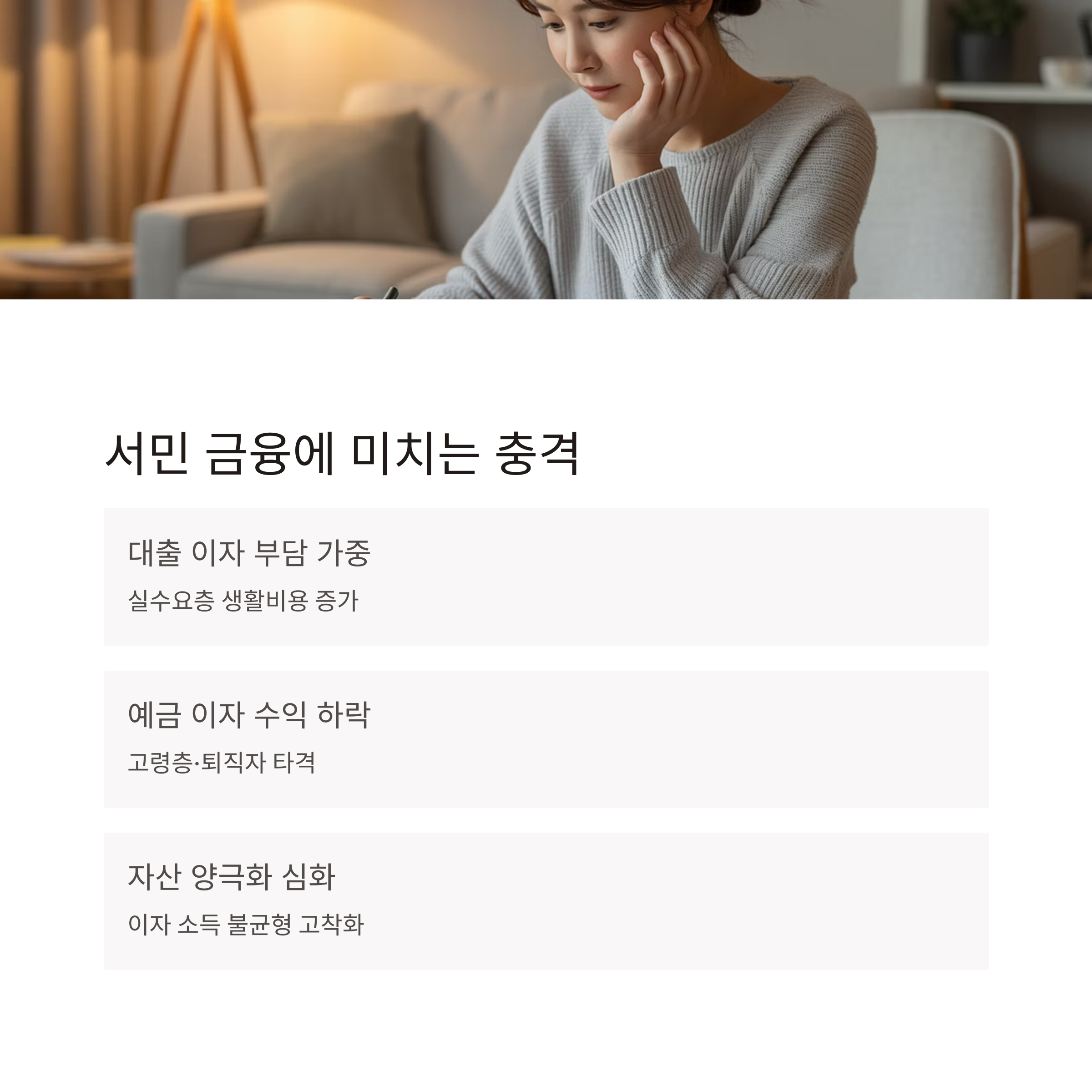 ✔ 예금 이자 수익 하락: 고령층·퇴직자 타격