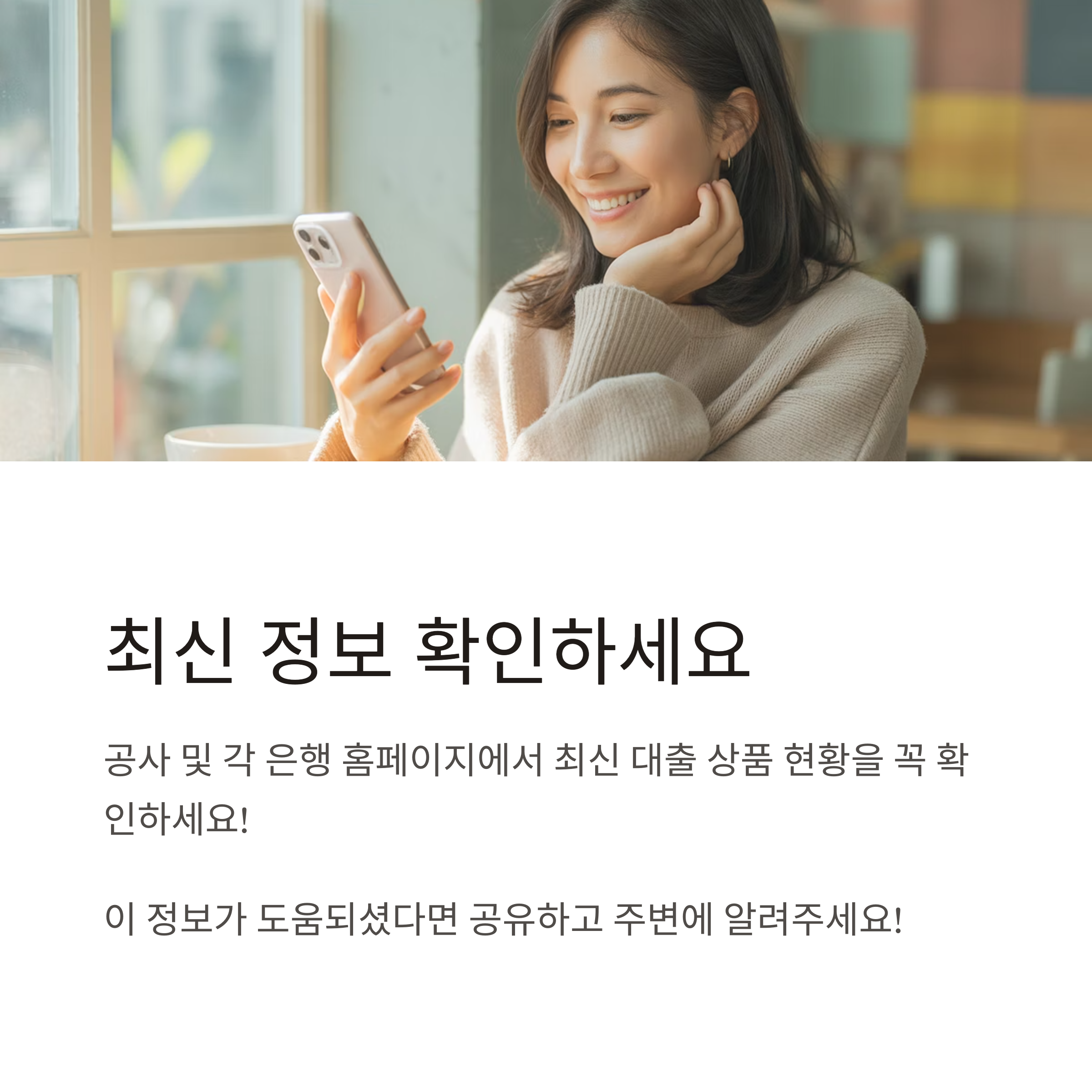 주택 구매를 고려하는 분들이라면 지속적인 정보 확인이 필요합니다. 공사 및 각 은행 홈페이지에서 최신 대출 상품 현황을 꼭 확인하세요!