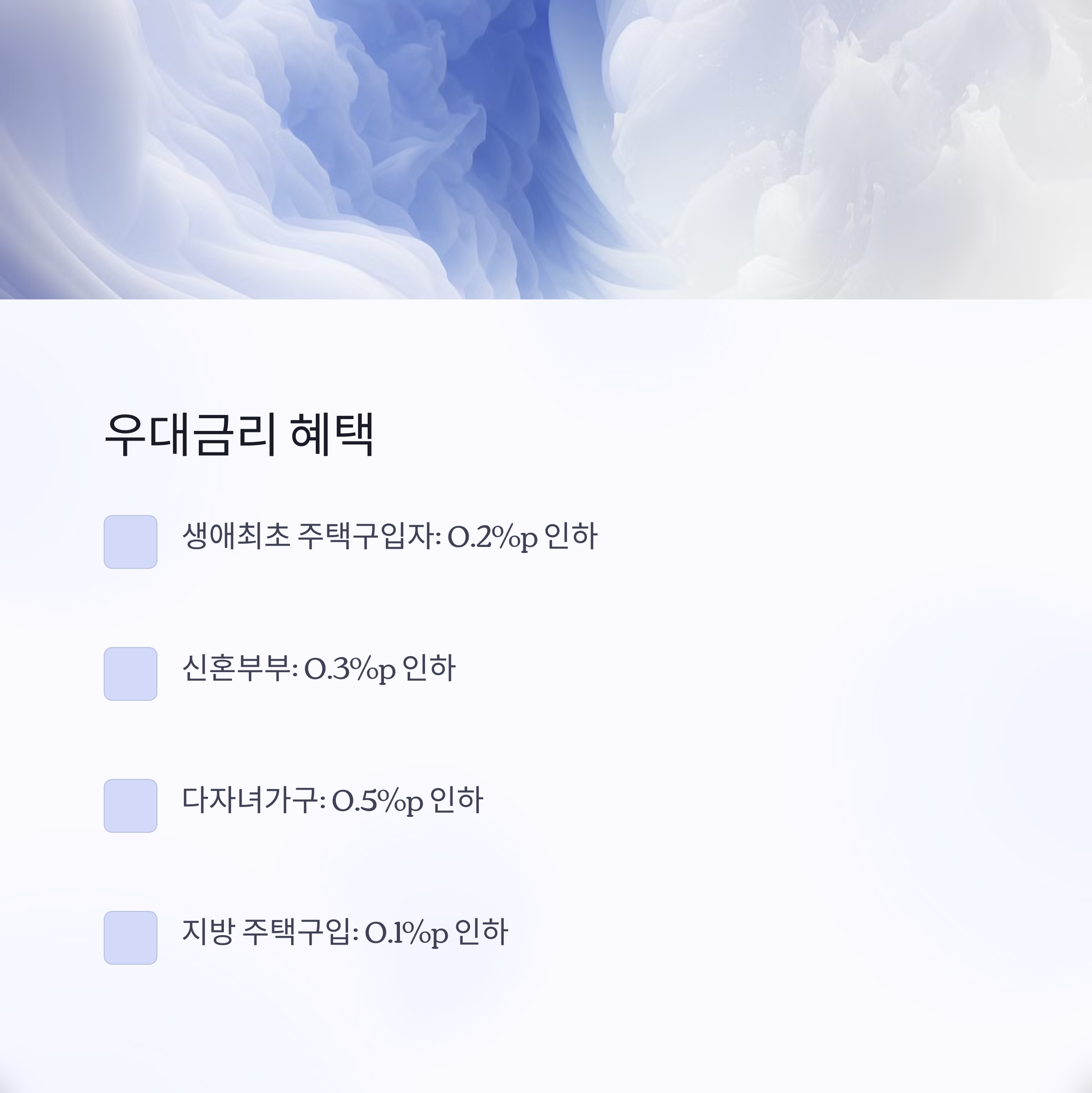 특히 신혼가구, 다자녀 가구, 지방 거주자 등 특정 조건을 충족하는 경우 더 낮은 금리를