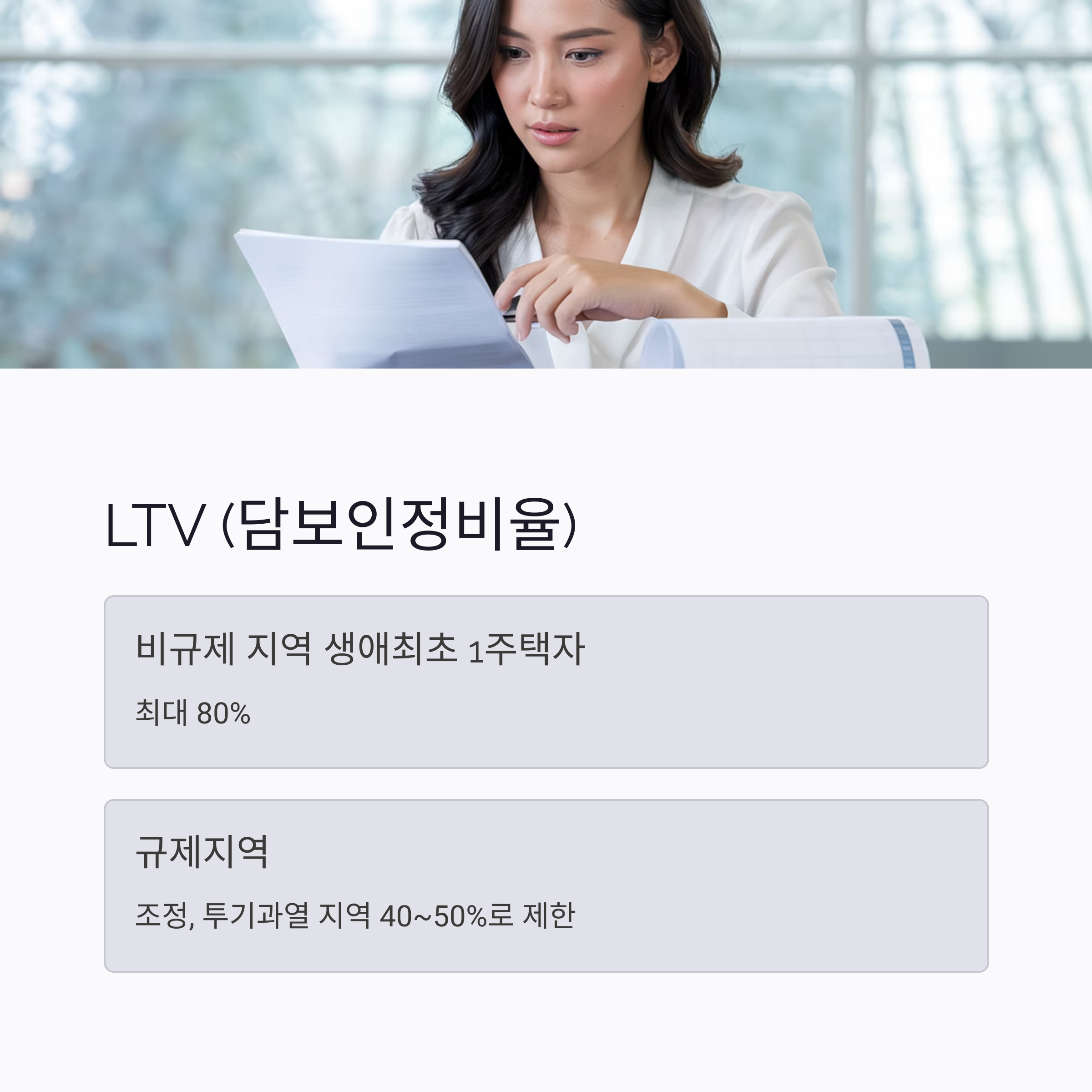 - 규제지역(조정, 투기과열): 40~50%로 제한