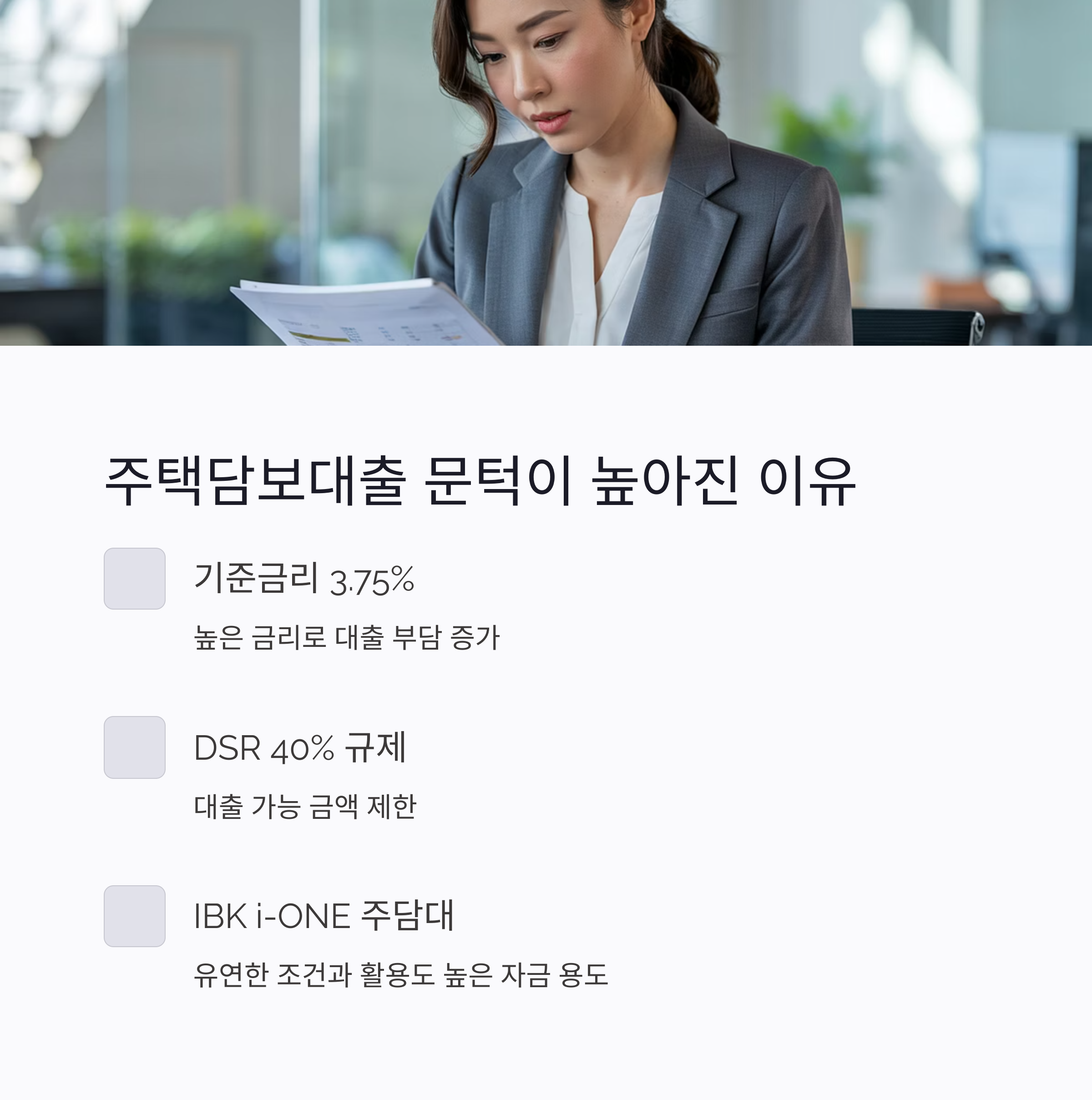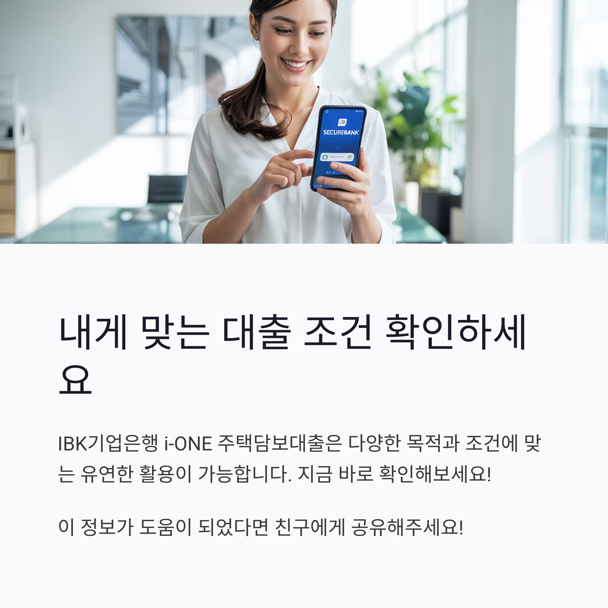 이런 상황에서 IBK기업은행의 i-ONE 주택담보대출은 비교적 유연한 조건과 활용도 높은 자금 용도로 주목받고 있습니다. 지금부터 조건, 한도, 금리까지 A to Z로 살펴보겠습니다.