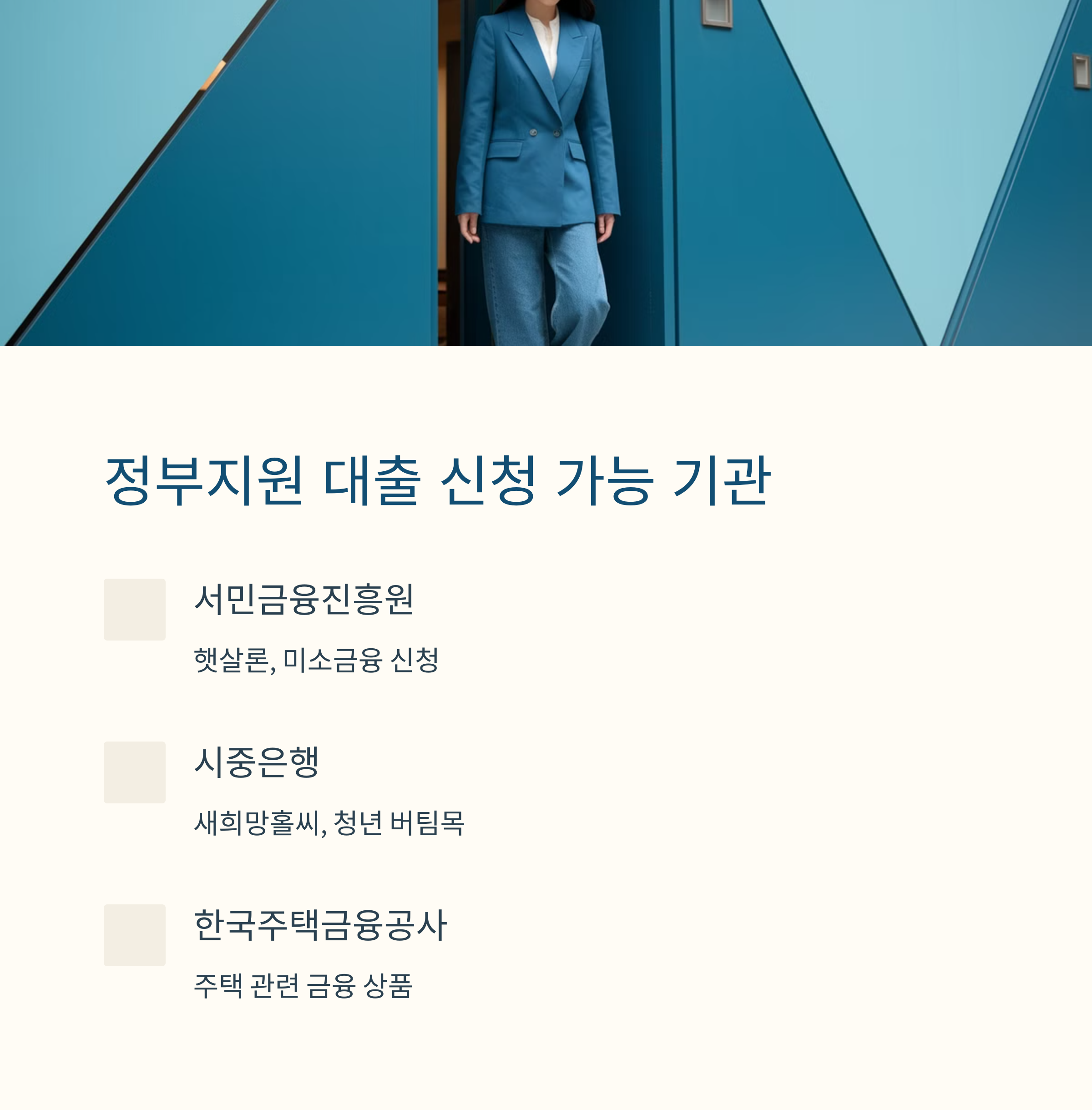직장인을 위한 대표적인 정부지원 대출 상품은 다음과 같습니다.