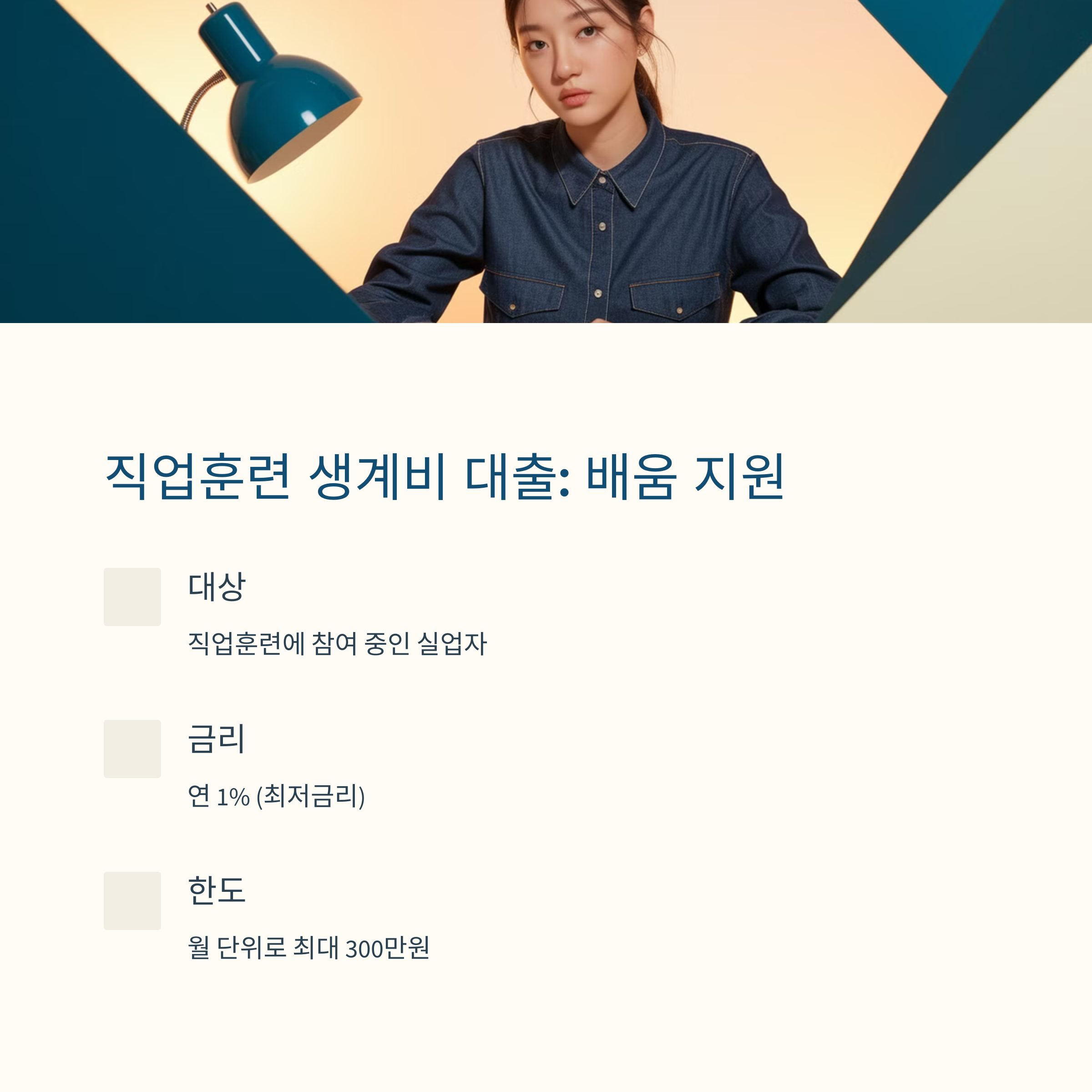 A3. 근로자 생활안정 자금(연 1.5%), 직업훈련 생계비 대출(연 1%)이 대표적인 초저금리 대출입니다.