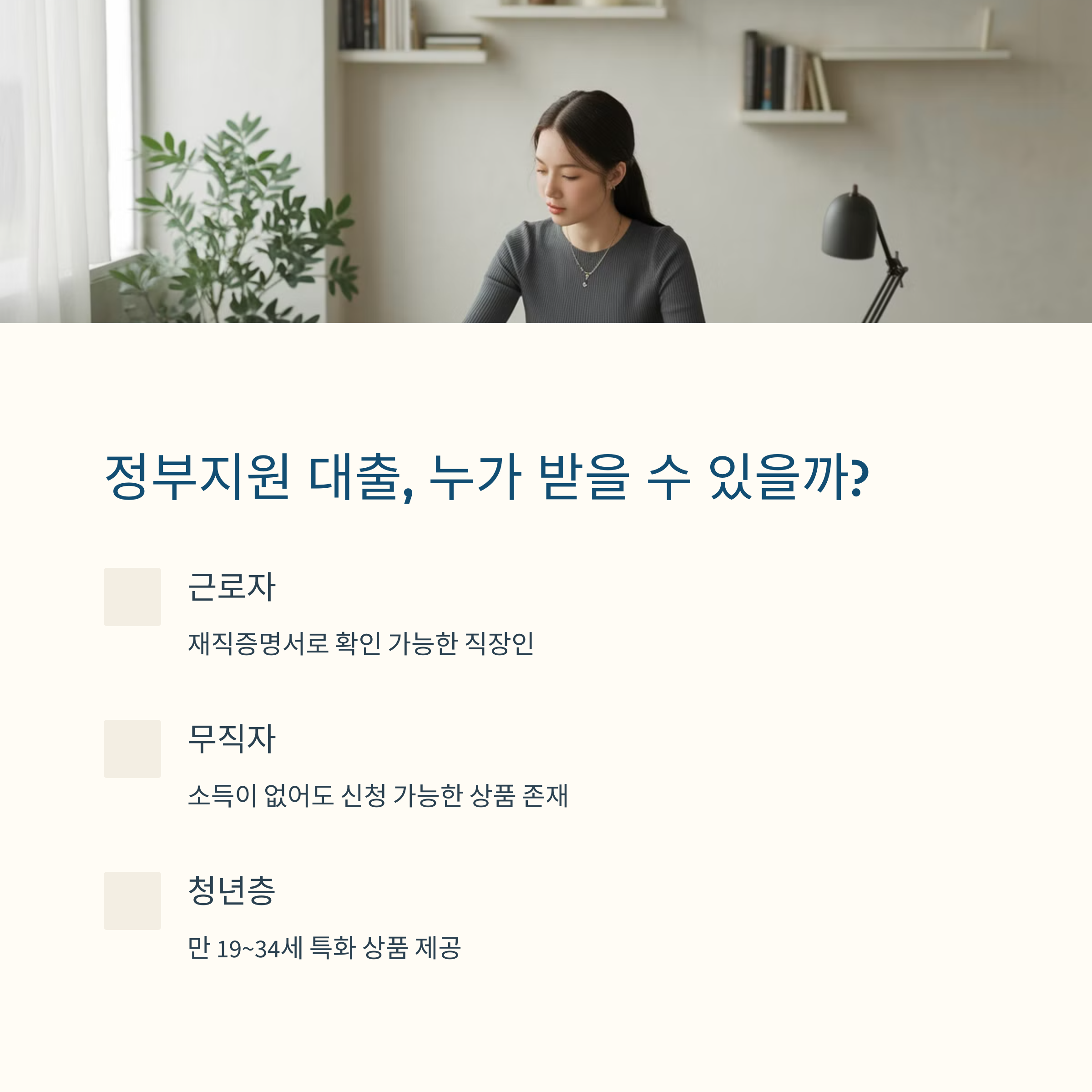정부지원 저금리 대출은 근로자, 무직자, 청년층 등