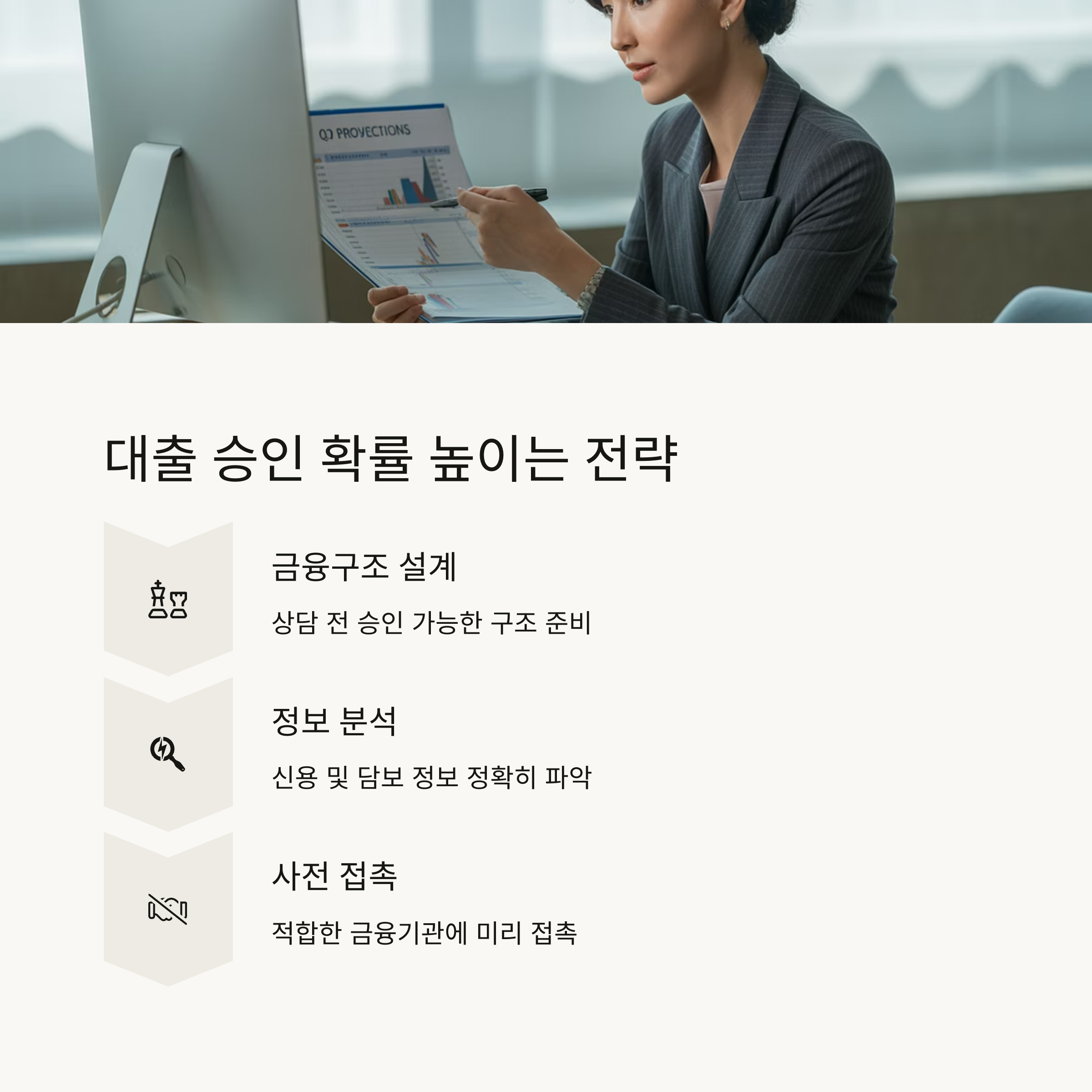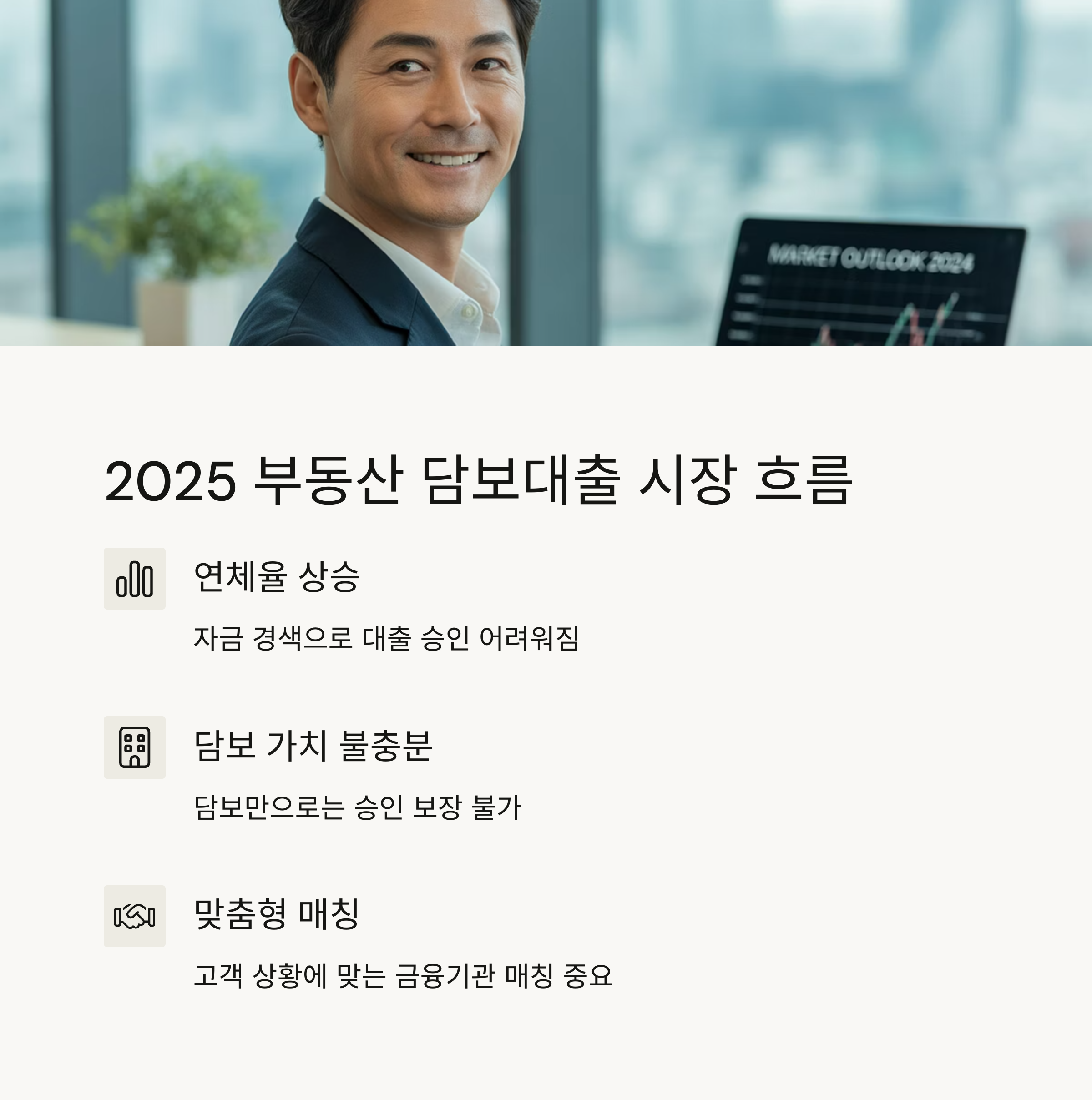 최근 금융시장은 연체율 상승과 자금 경색으로 인해, 대출 승인이 점점 어려워지고 있습니다. 특히 부동산 담보대출의 경우, 담보 가치만으로는 승인을 보장할 수 없습니다. 사전 금융구조 설계가 필수이며, 고객의 상황에 맞는 금융기관 매칭이 중요해졌습니다.