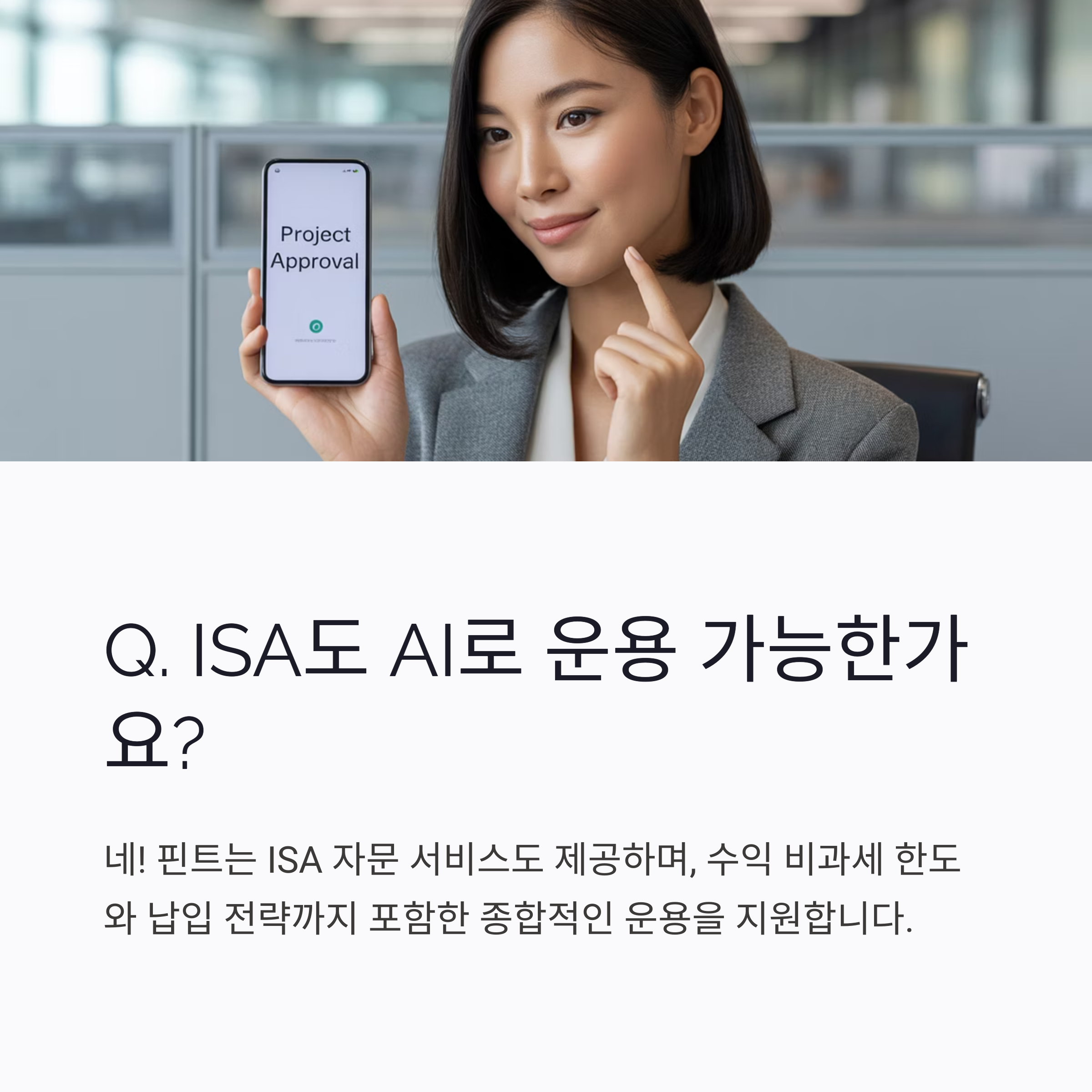 A2. 네. 핀트는 ISA 자문 서비스도 제공하며, 수익 비과세 한도와 납입 전략까지 포함한 종합적인