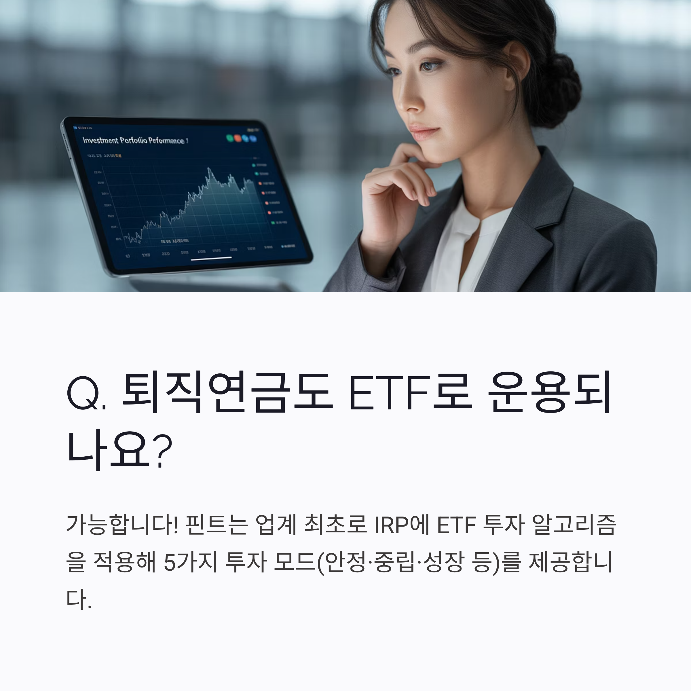 A4. 가능합니다. 핀트는 업계 최초로 IRP에 ETF 투자 알고리즘을 적용해