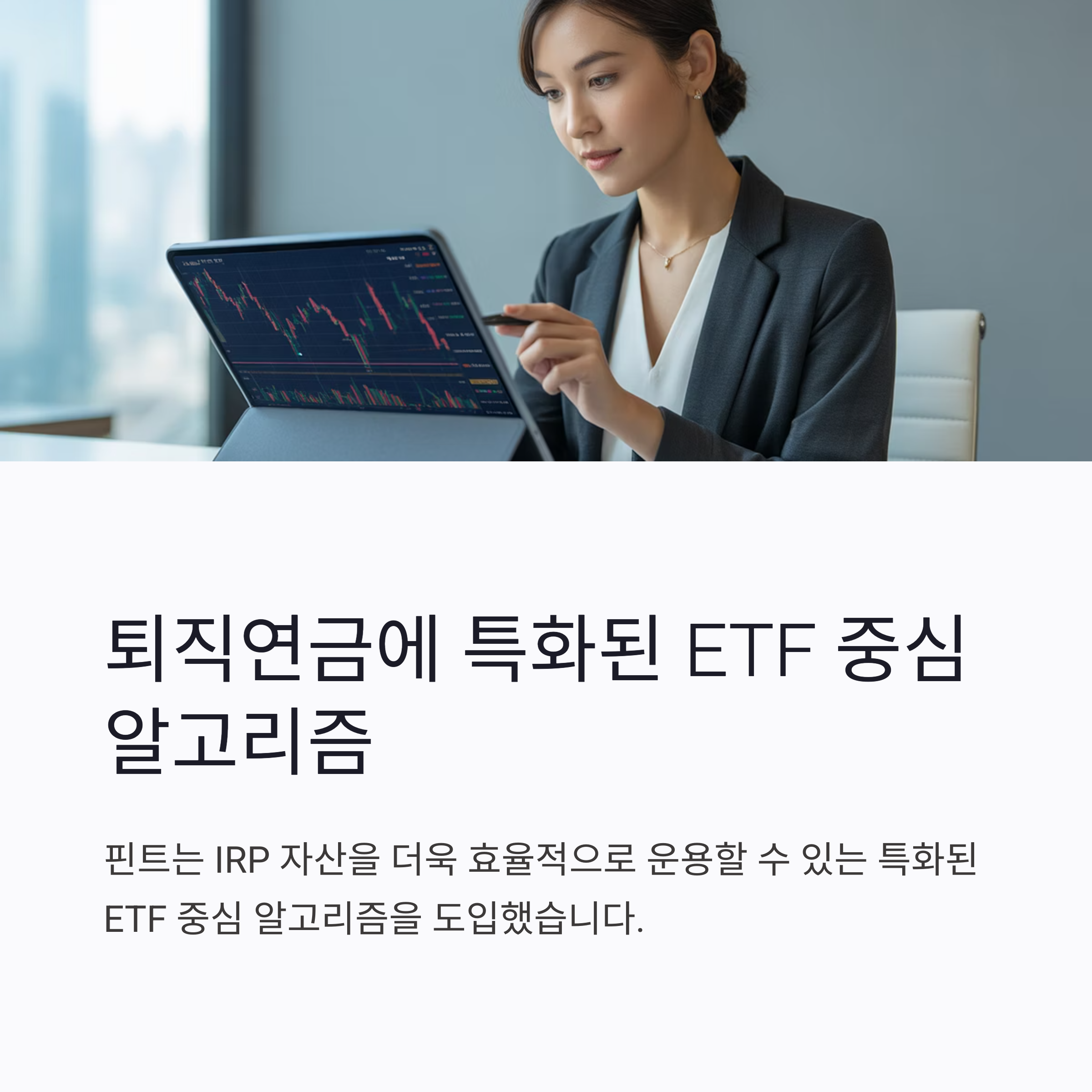특히 퇴직연금에 특화된 ETF 중심 알고리즘 도입으로, IRP 자산을 더욱 효율적으로 운용할 수 있습니다.