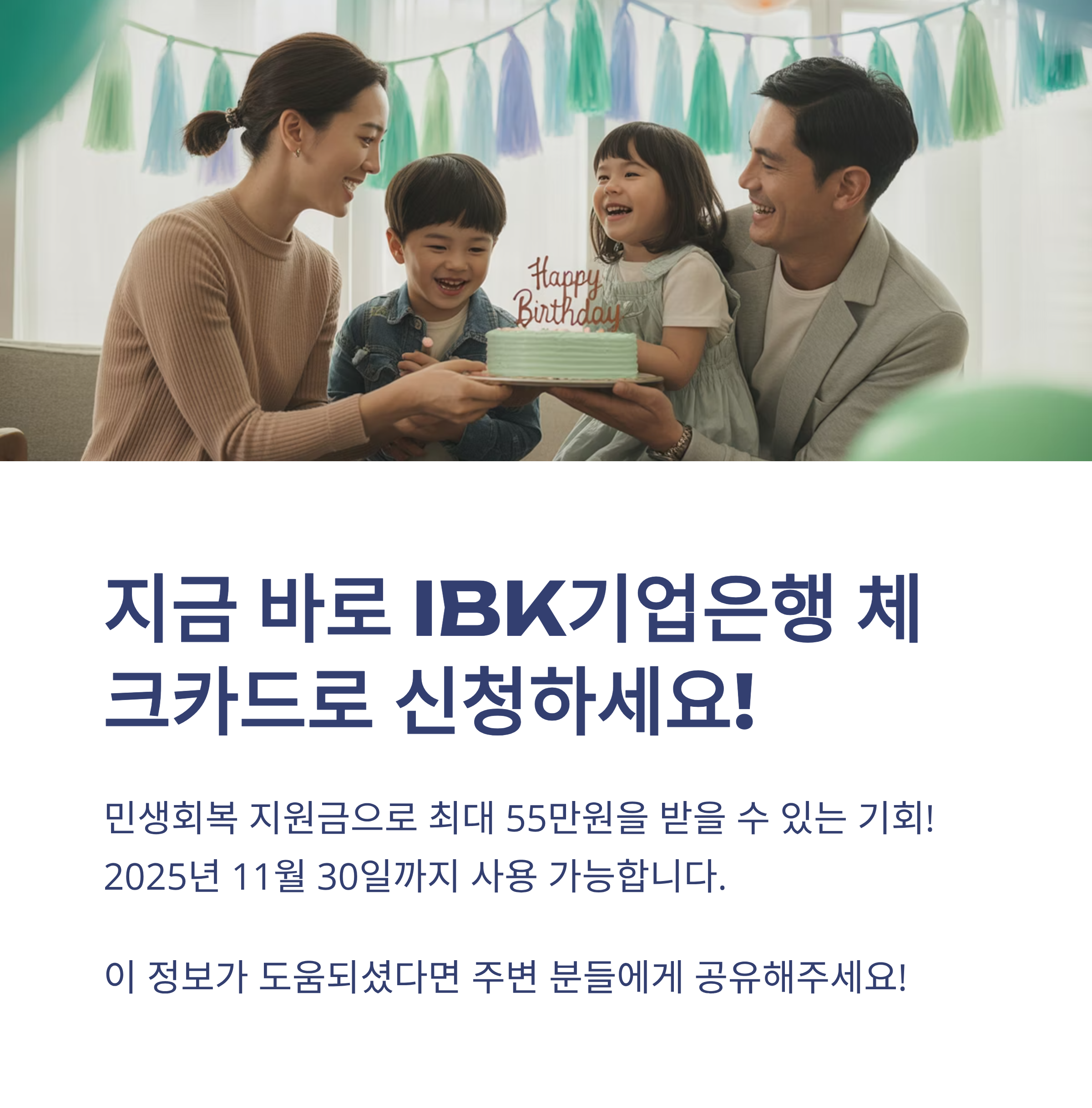 민생회복 지원금은소득에 따라 최대 55만원까지 지원받을 수 있는 절호의 기회입니다.IBK기업은행 체크카드를 통해