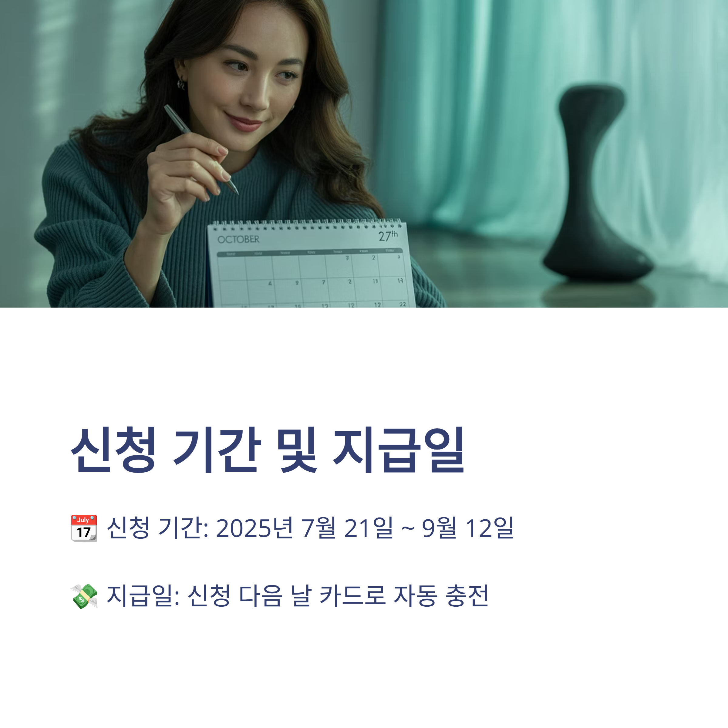 📆신청 기간: 2025년 7월 21일 ~ 9월 12일 💸지급일: 신청 다음 날 카드로 자동 충전