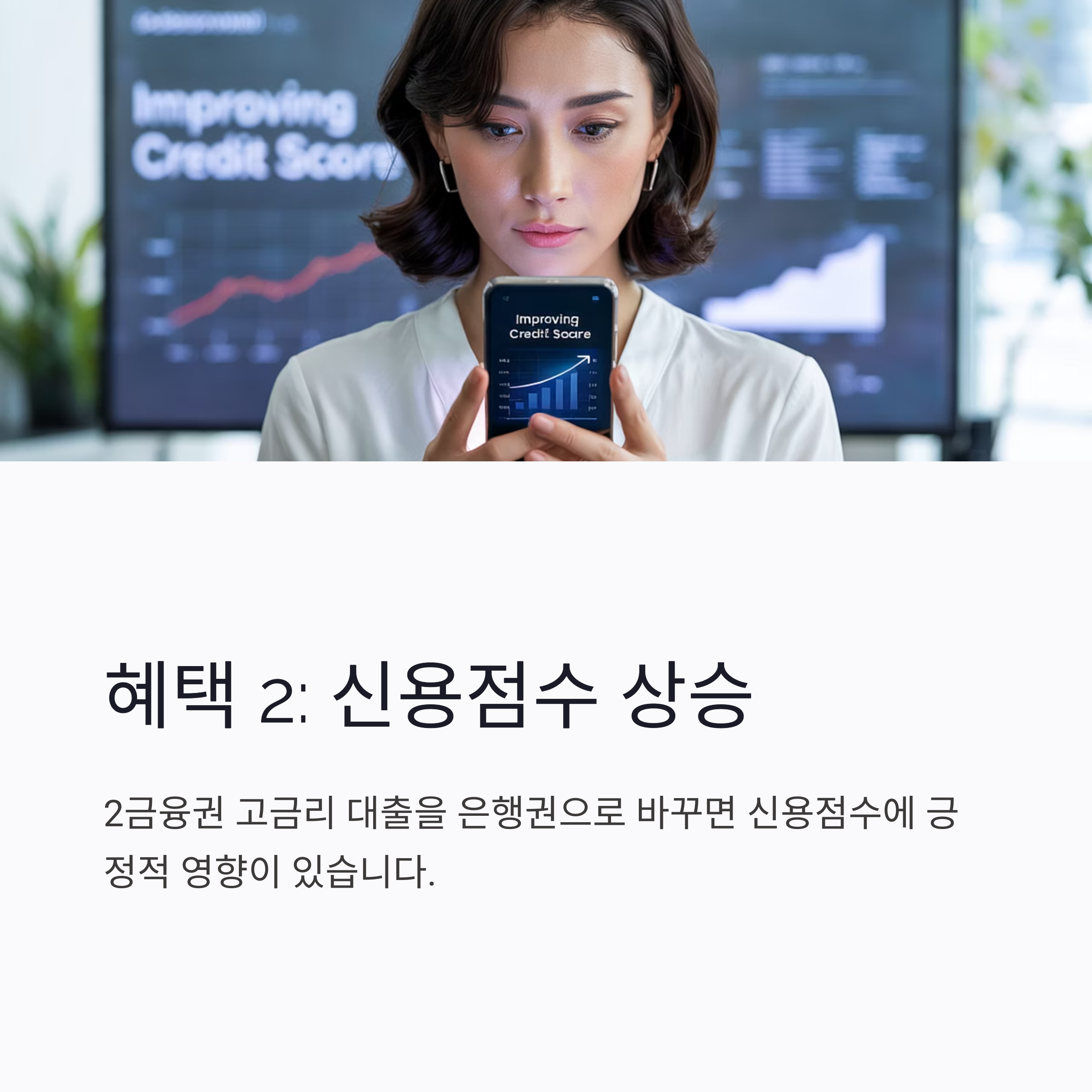 2금융권 고금리 대출을 은행권으로 바꾸면 신용점수에 긍정적 영향이 있습니다.