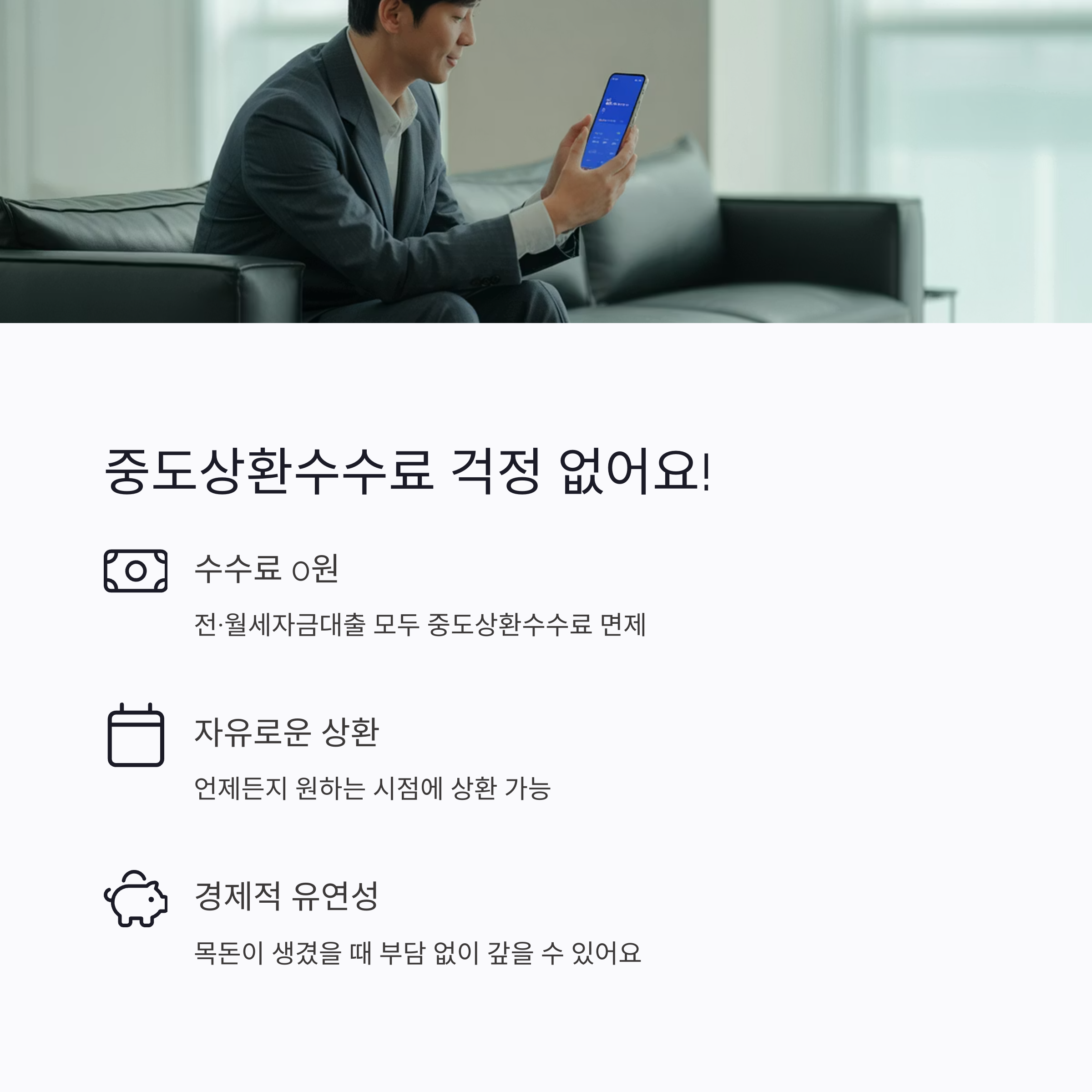 전·월세자금대출 모두 중도상환수수료가 ‘0원’입니다.