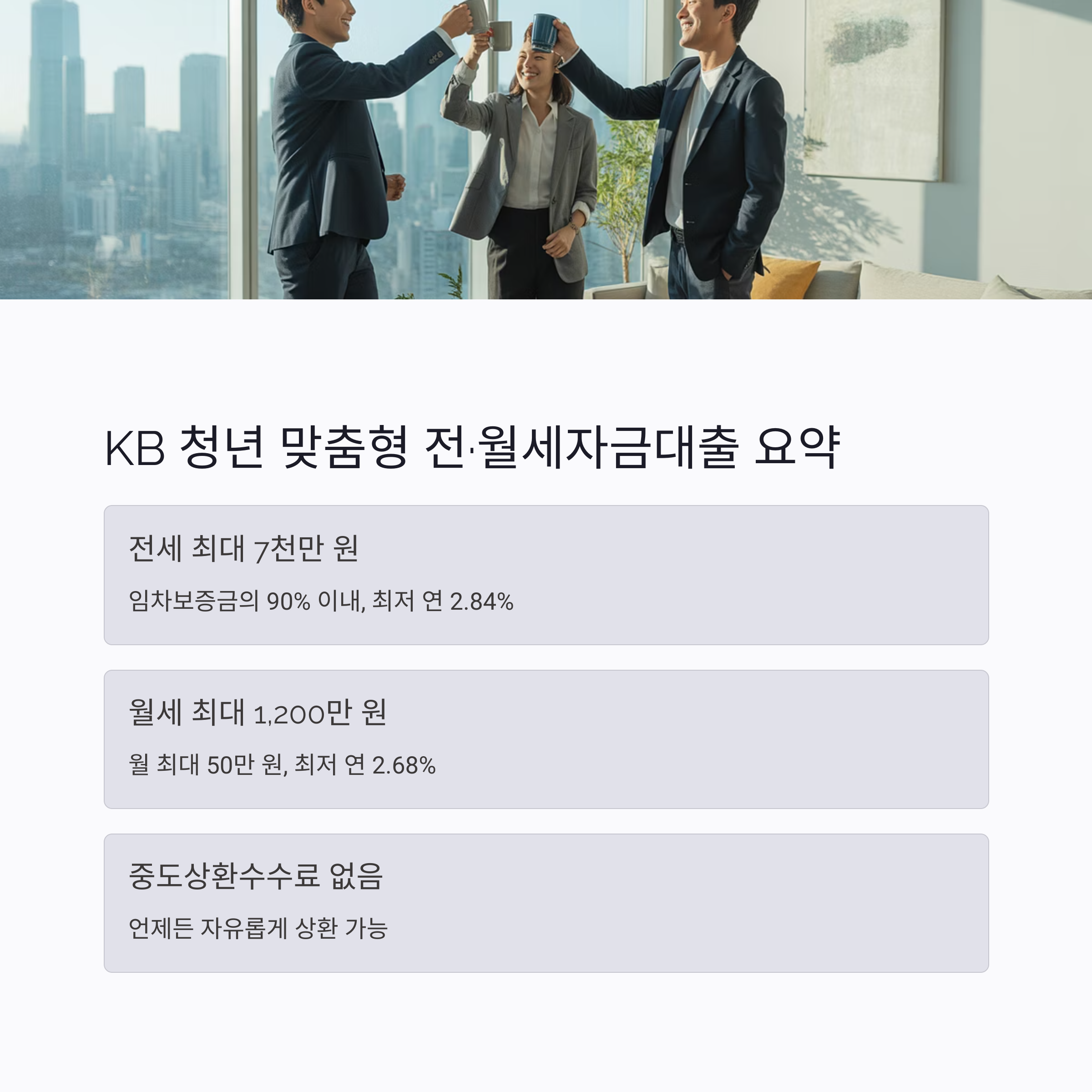 KB 청년 맞춤형 전·월세자금대출은 청년층의 주거비 부담을 줄이기 위해 정부(금융위원회)와 KB국민은행이 공동으로 운영하는 대출 상품입니다.
