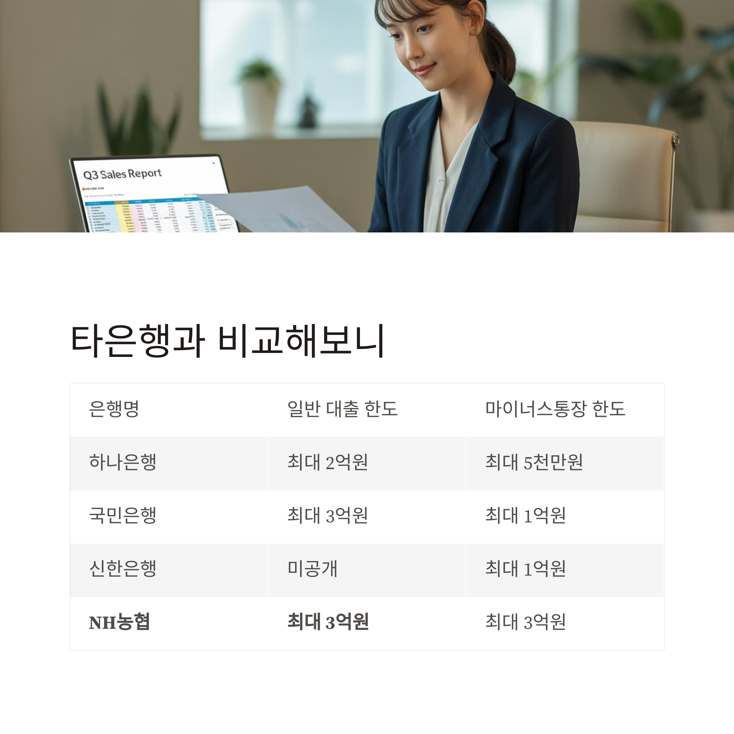 다른 주요 은행들과 비교해 보면 NH농협의 이번 대출한도 확대가 업계 최고 수준임을 확인할 수 있습니다.