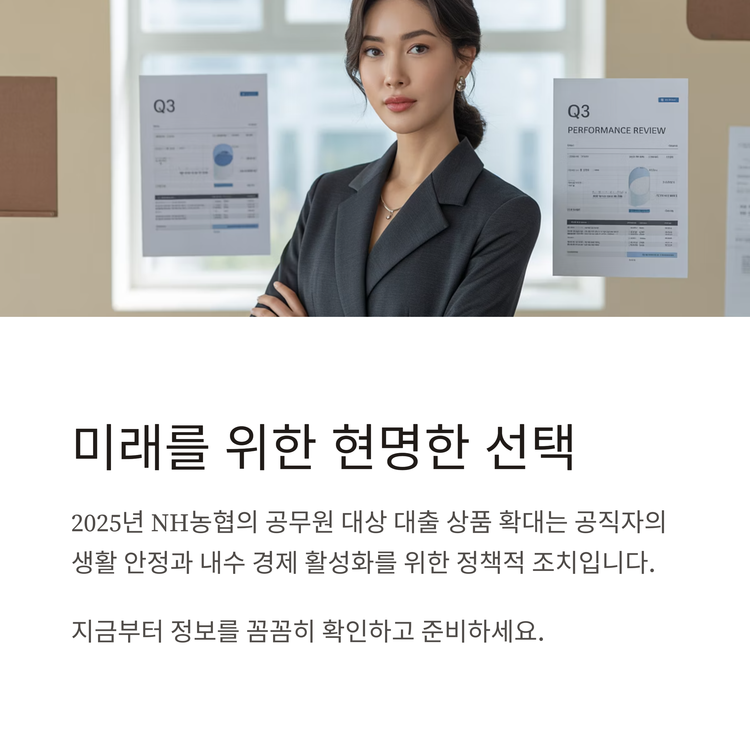 2025년 NH농협의 공무원 대상 대출 상품 확대는 공직자의 생활 안정은 물론, 내수 경제에 활력을 줄 정책적 조치입니다. 특히 마이너스통장 대출 한도가 3억원으로 상향되며, 공무원 가계의 자금 운용에 큰 도움이 될 전망입니다.