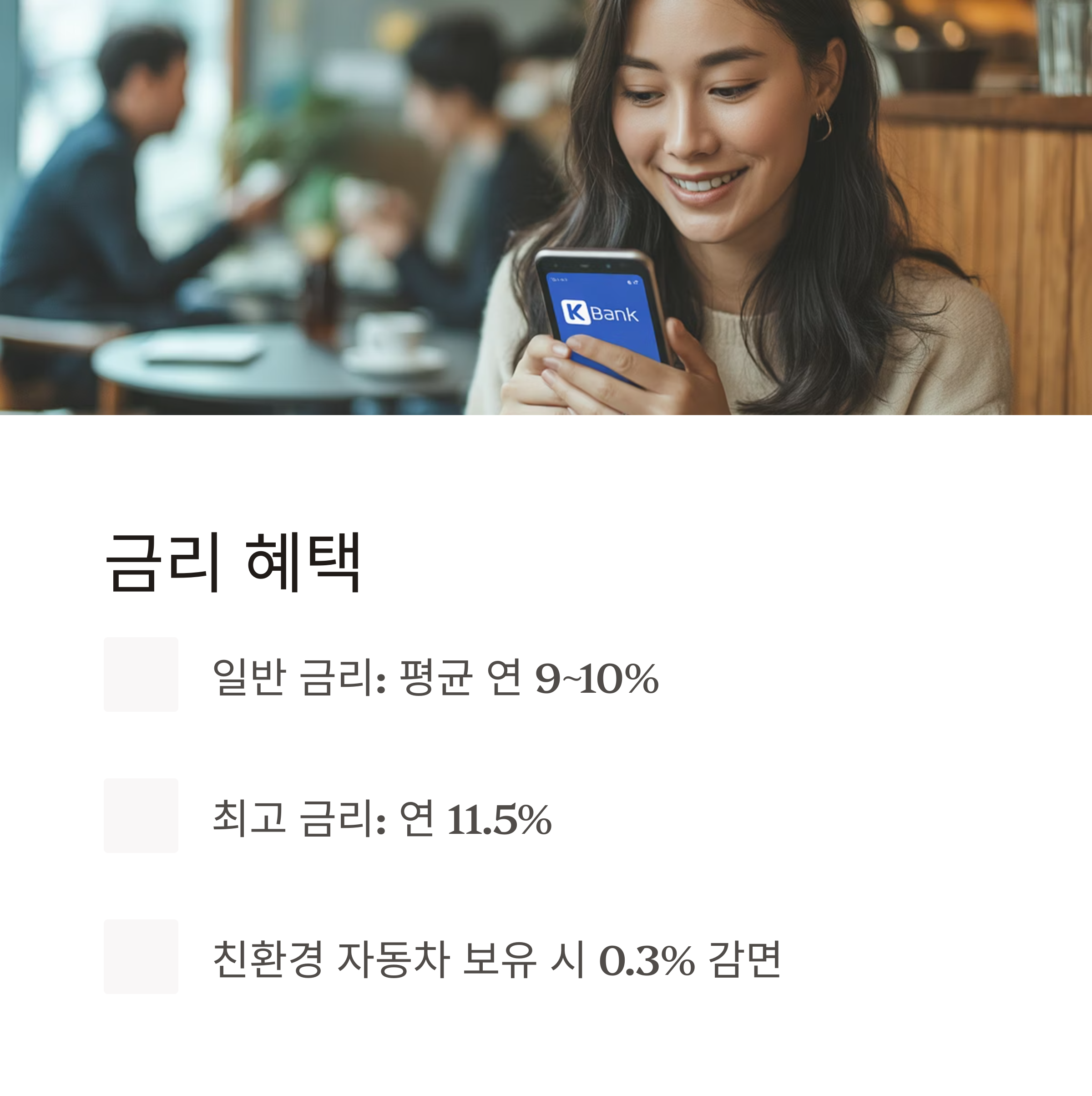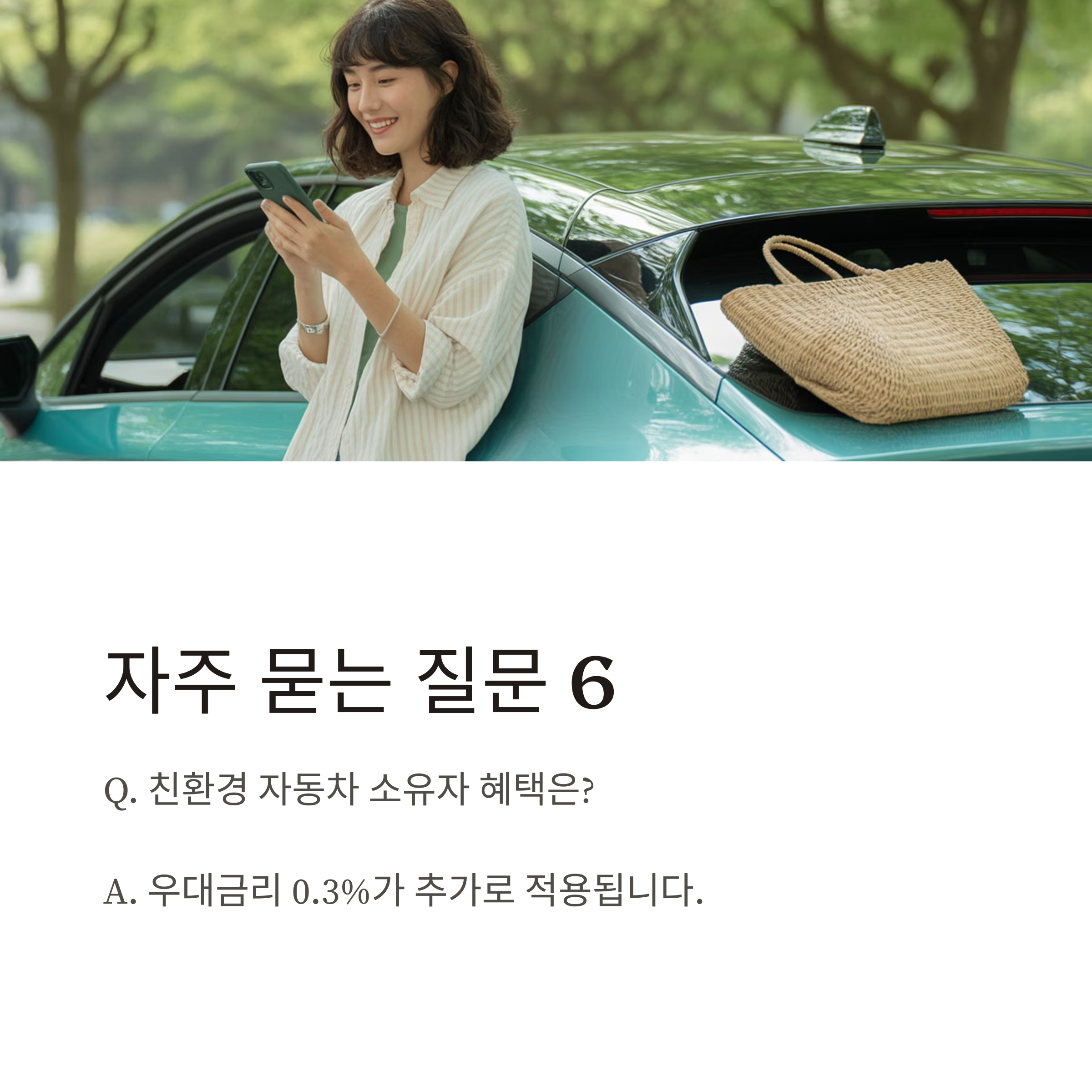 - ✅ 우대 금리: 친환경 자동차 보유 시 0.3% 감면