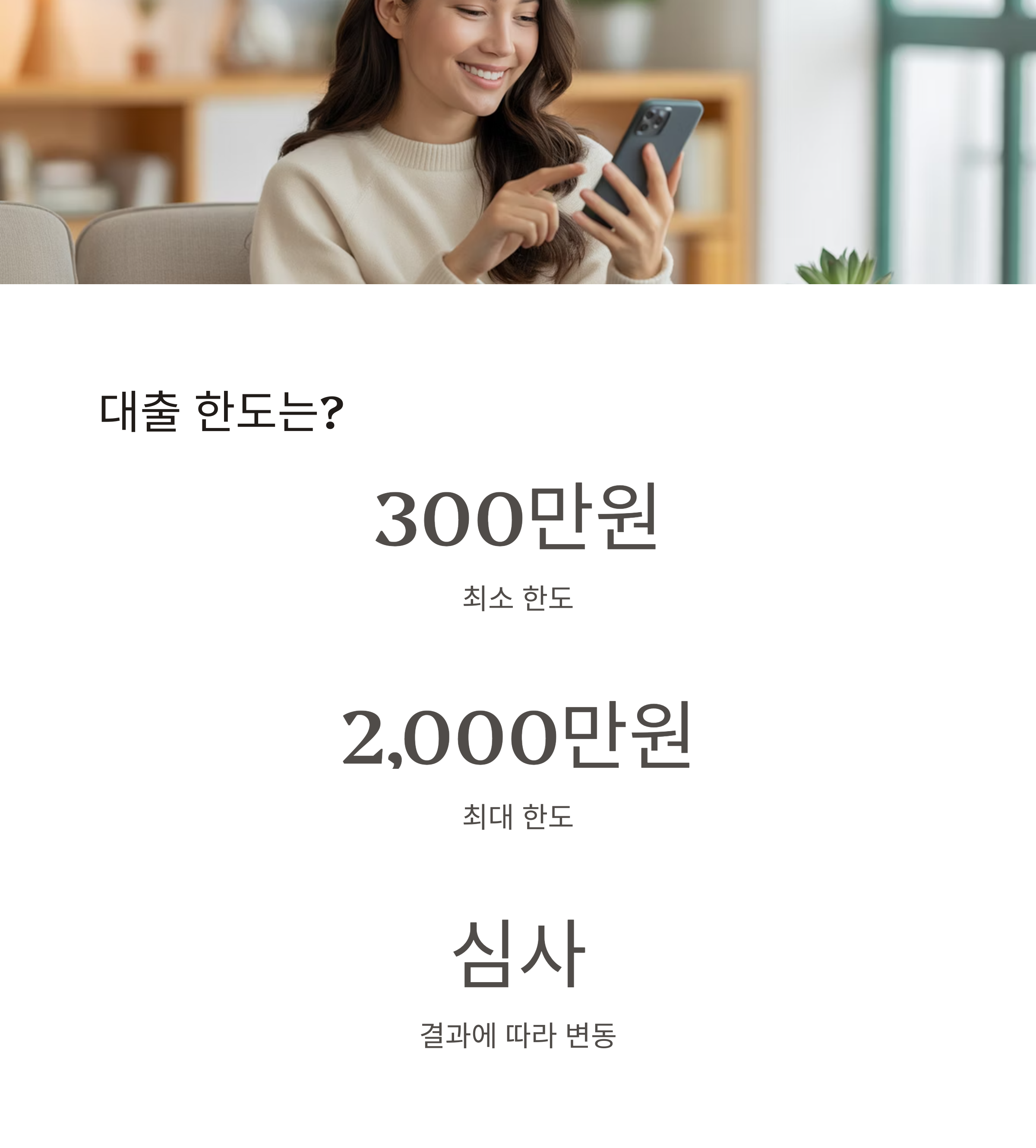 | 한도 | 300만 원 ~ 2,000만 원 |