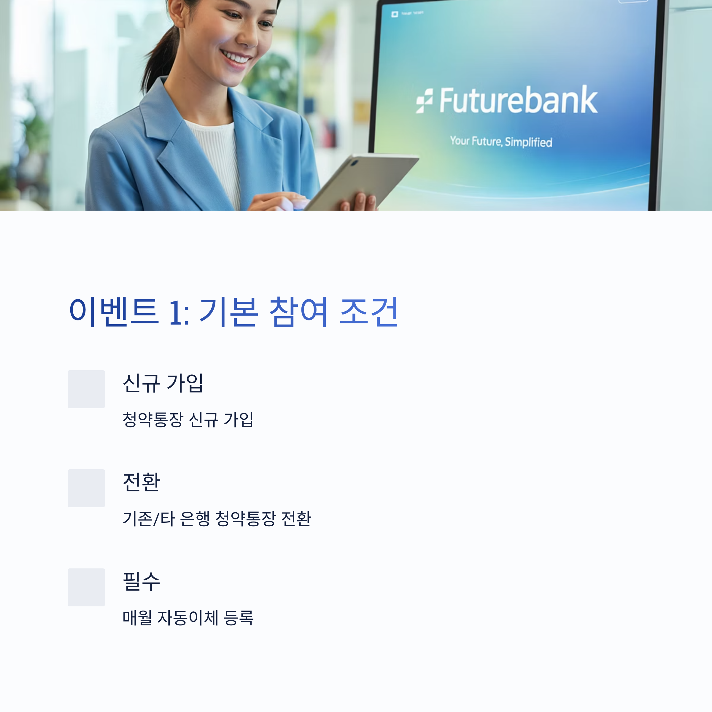 ▶ 이벤트 1: 기본 참여 조건 ✔ 청약통장 신규 가입