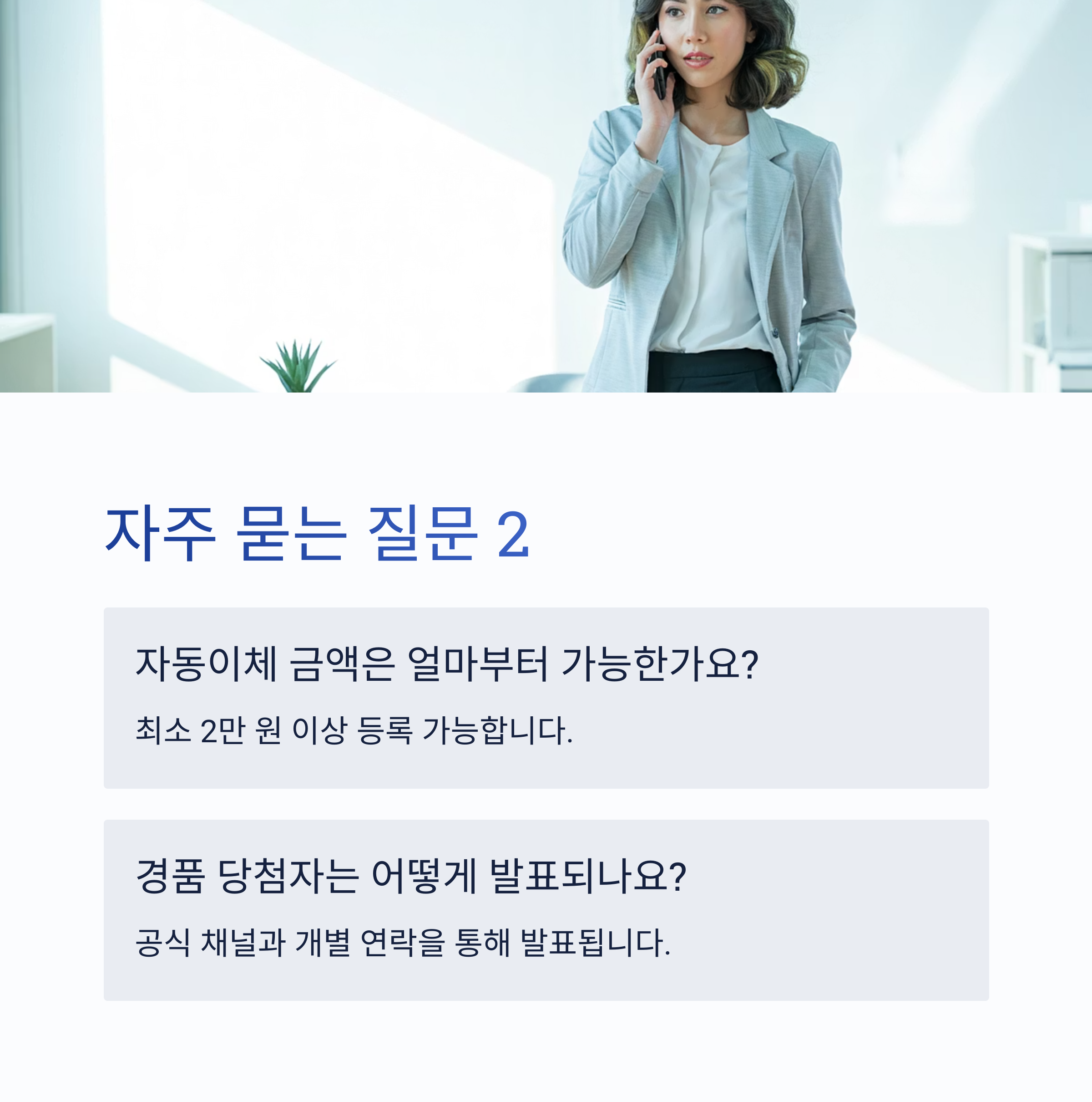 A8. 자동이체 등록은 이벤트 응모 필수 조건이며, 미등록 시 추첨 대상에서 제외될 수 있습니다.