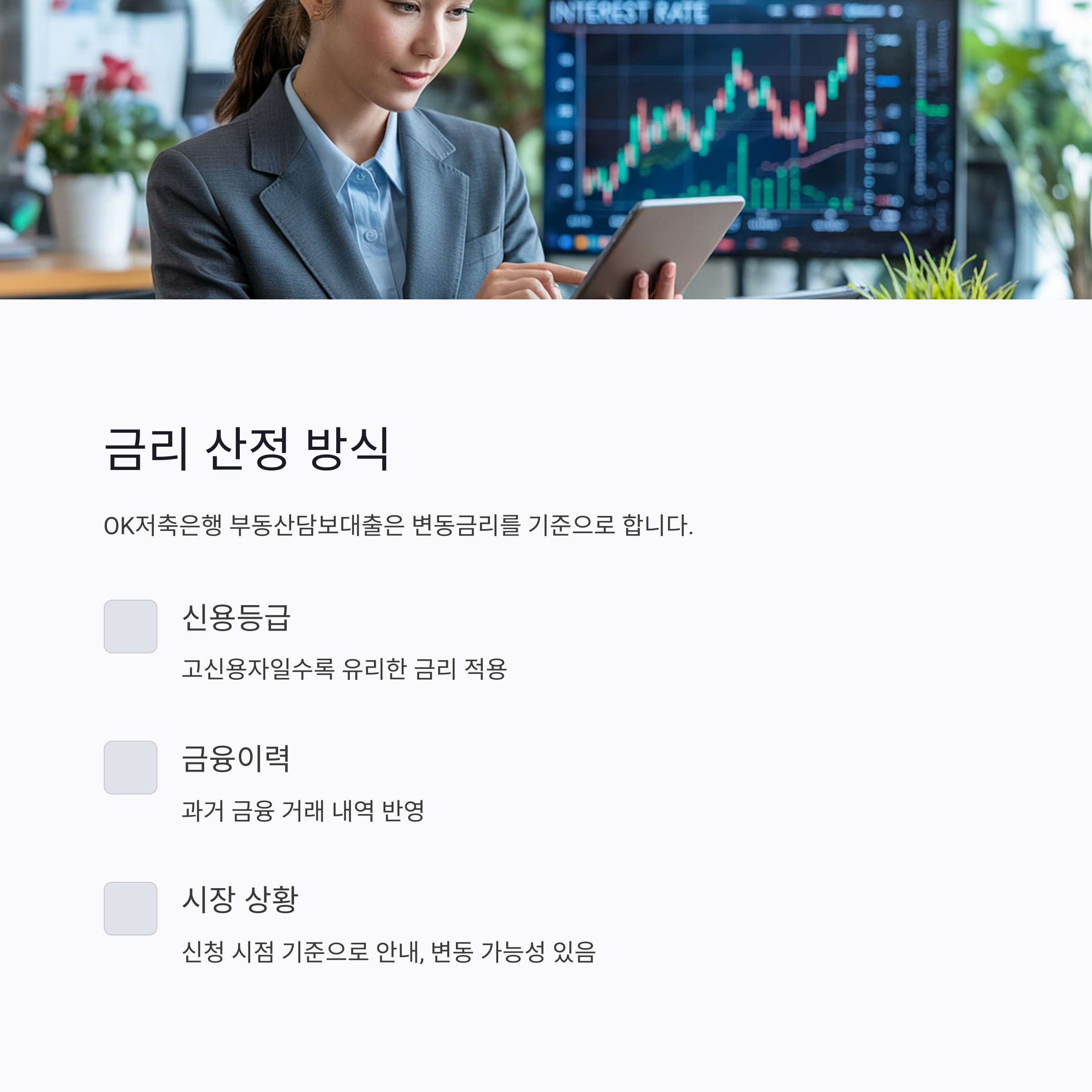 지금부터 OK저축은행 부동산담보대출이 어떤 조건으로 제공되는지 함께 알아보겠습니다.