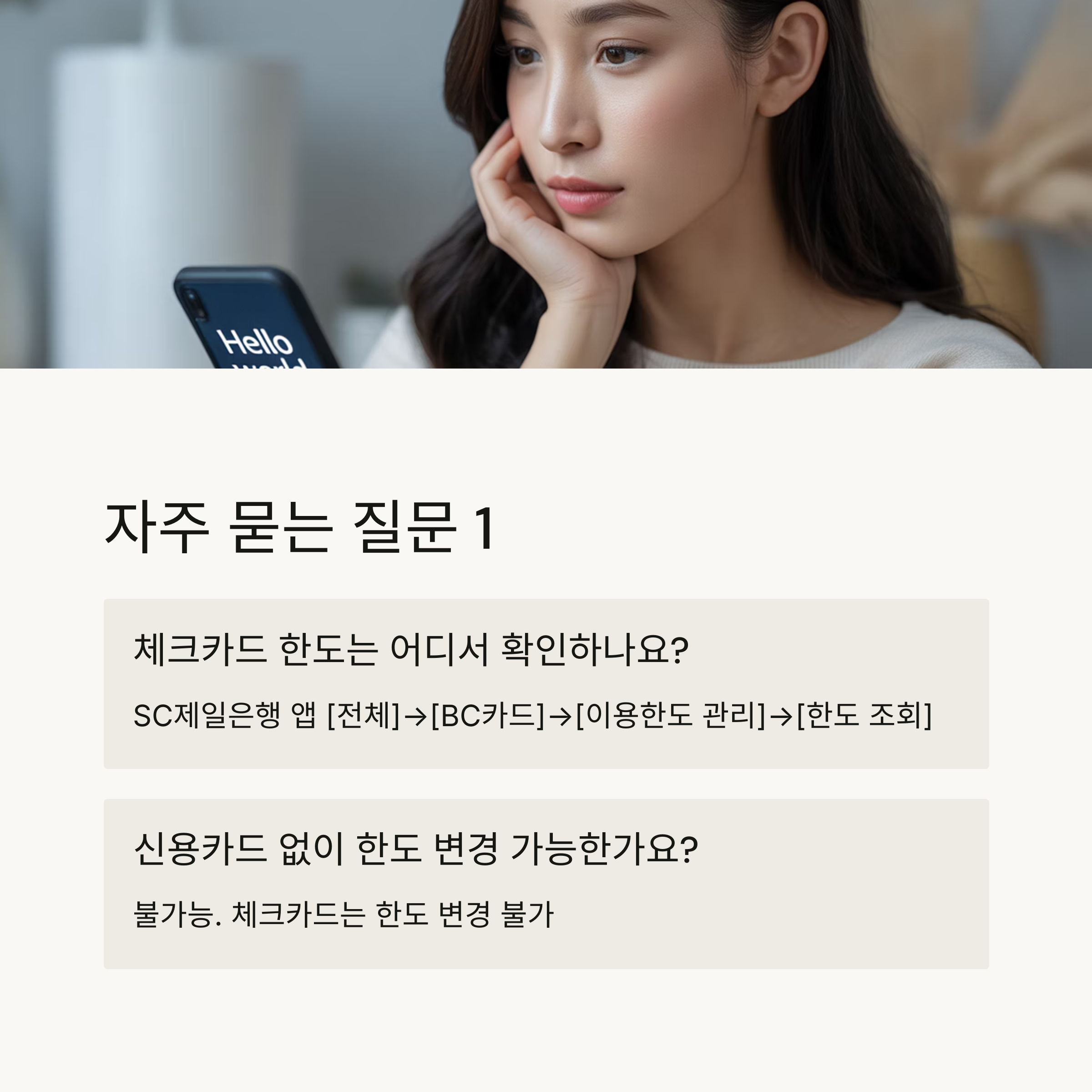 👉 SC제일은행에서는 이 두 카드 모두 한도 조회 메뉴를 제공하지만, 한도 변경은 신용카드에만 가능합니다.