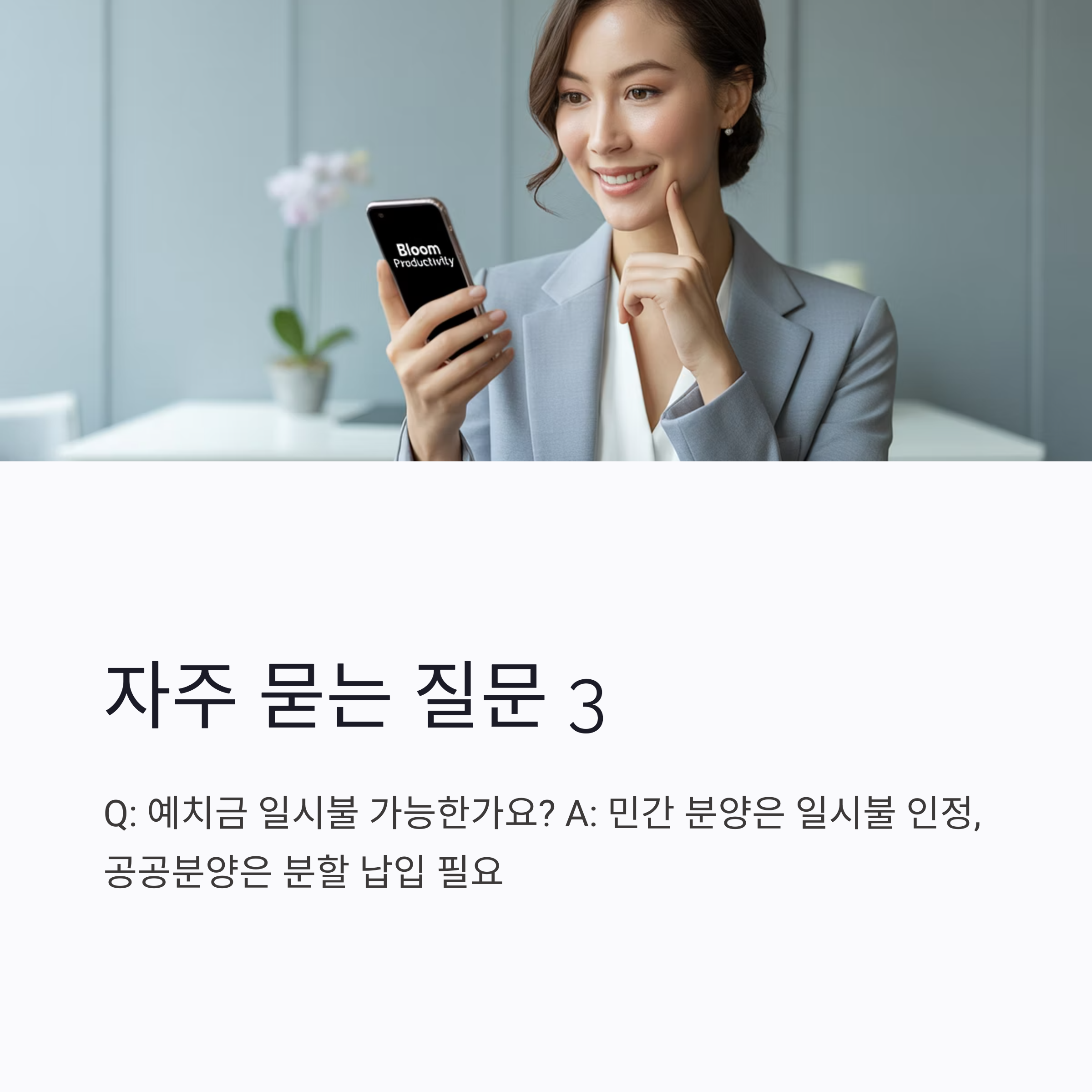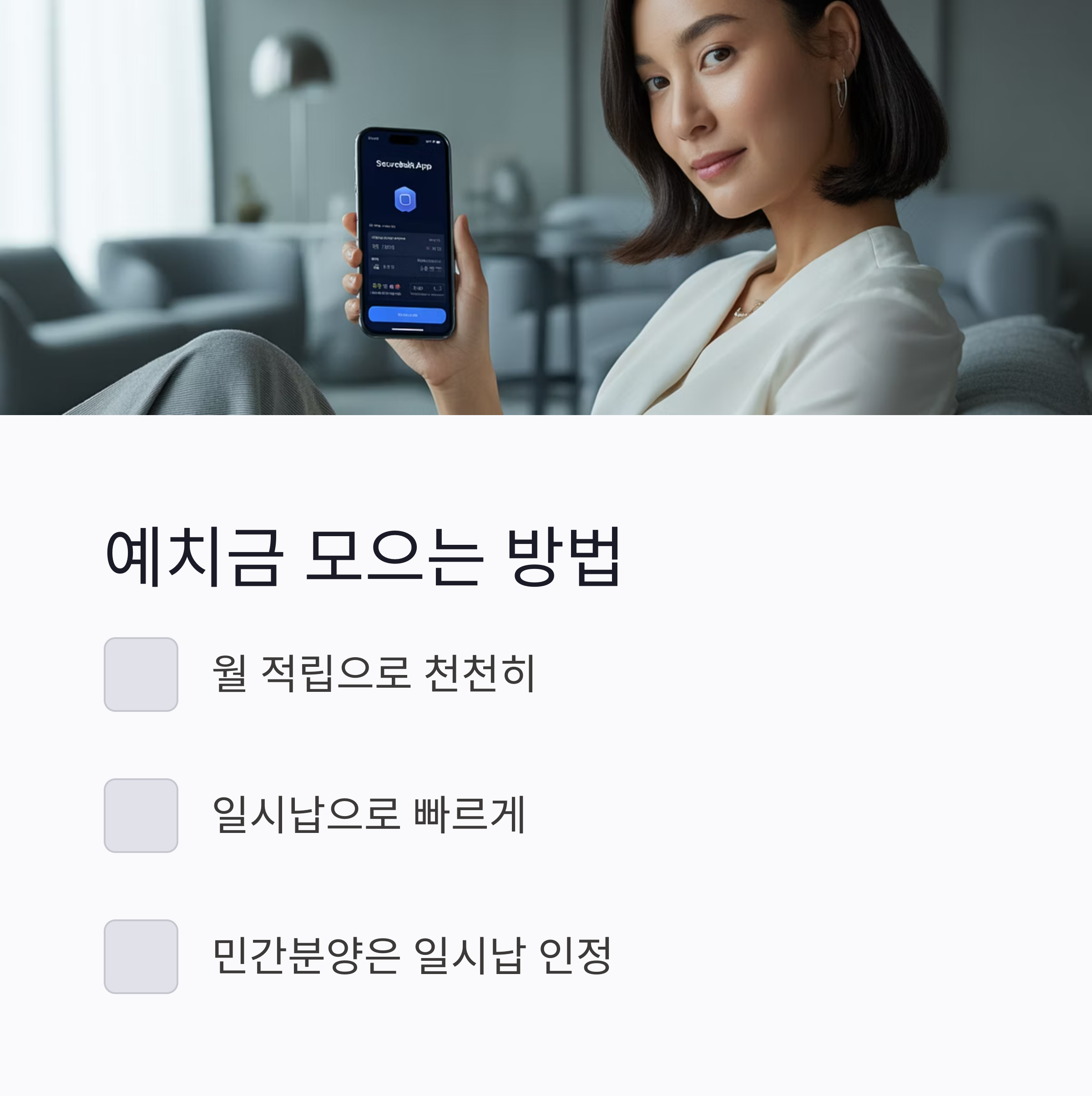 예치금은 월 적립으로 모아갈 수도 있고, 일시납도 가능합니다. 민간분양 기준에서는 일시납 인정도 되므로